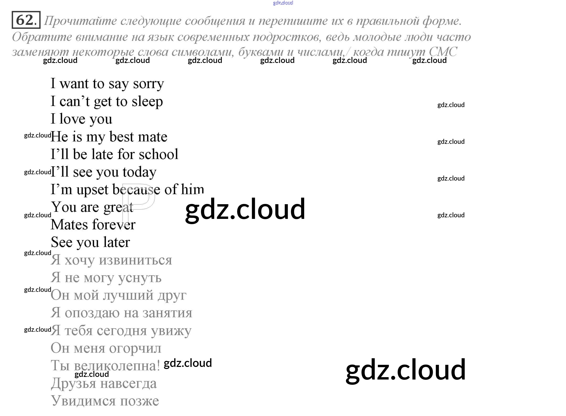 Ответ на задание 62 Учебник Английский язык за 9 (девятый) класс Биболетова, Бабушис, Кларк, Морозова Enjoy English 2014