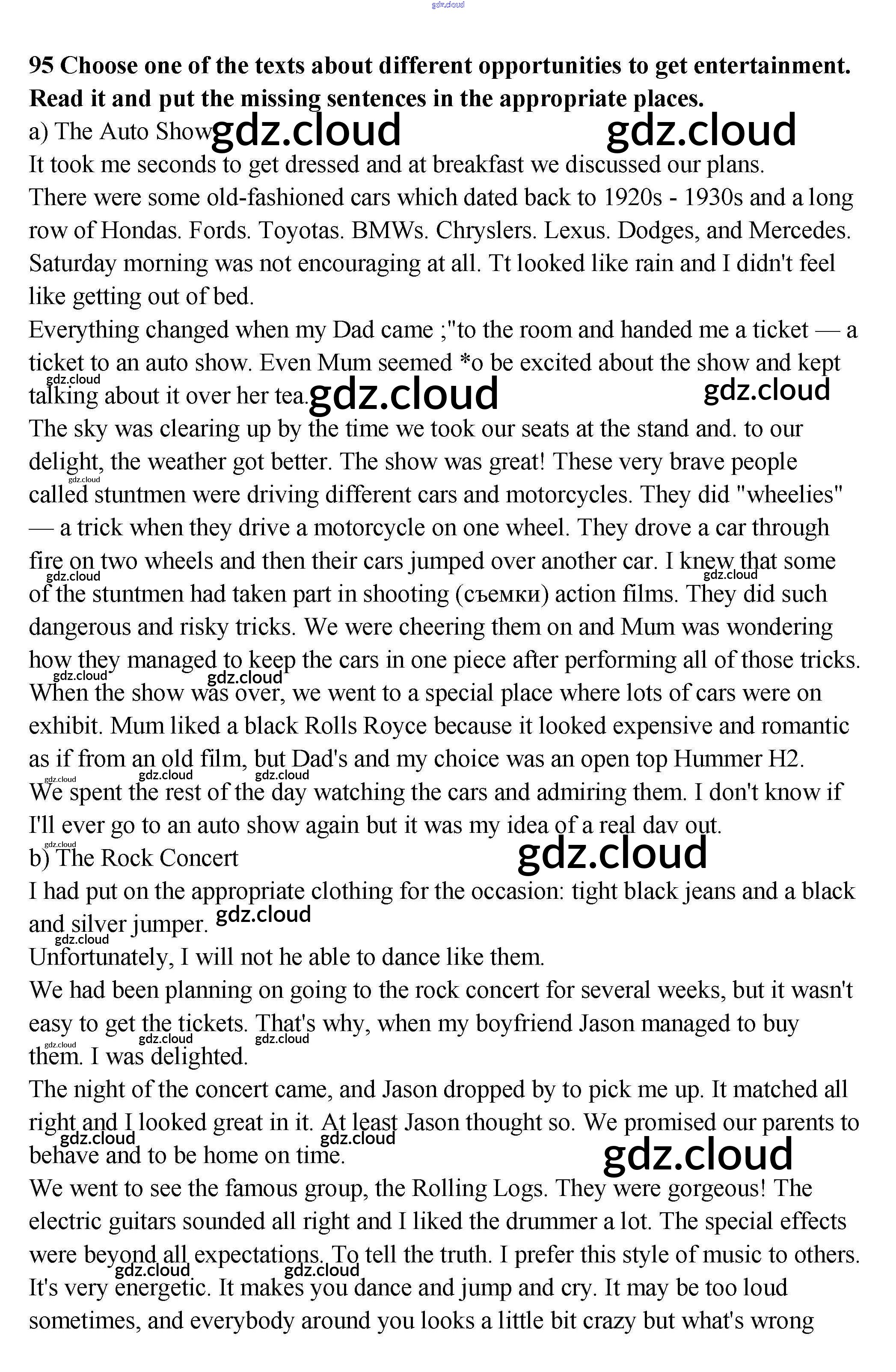 Ответ на задание 95 Учебник Английский язык за 9 (девятый) класс Биболетова, Бабушис, Кларк, Морозова Enjoy English 2014
