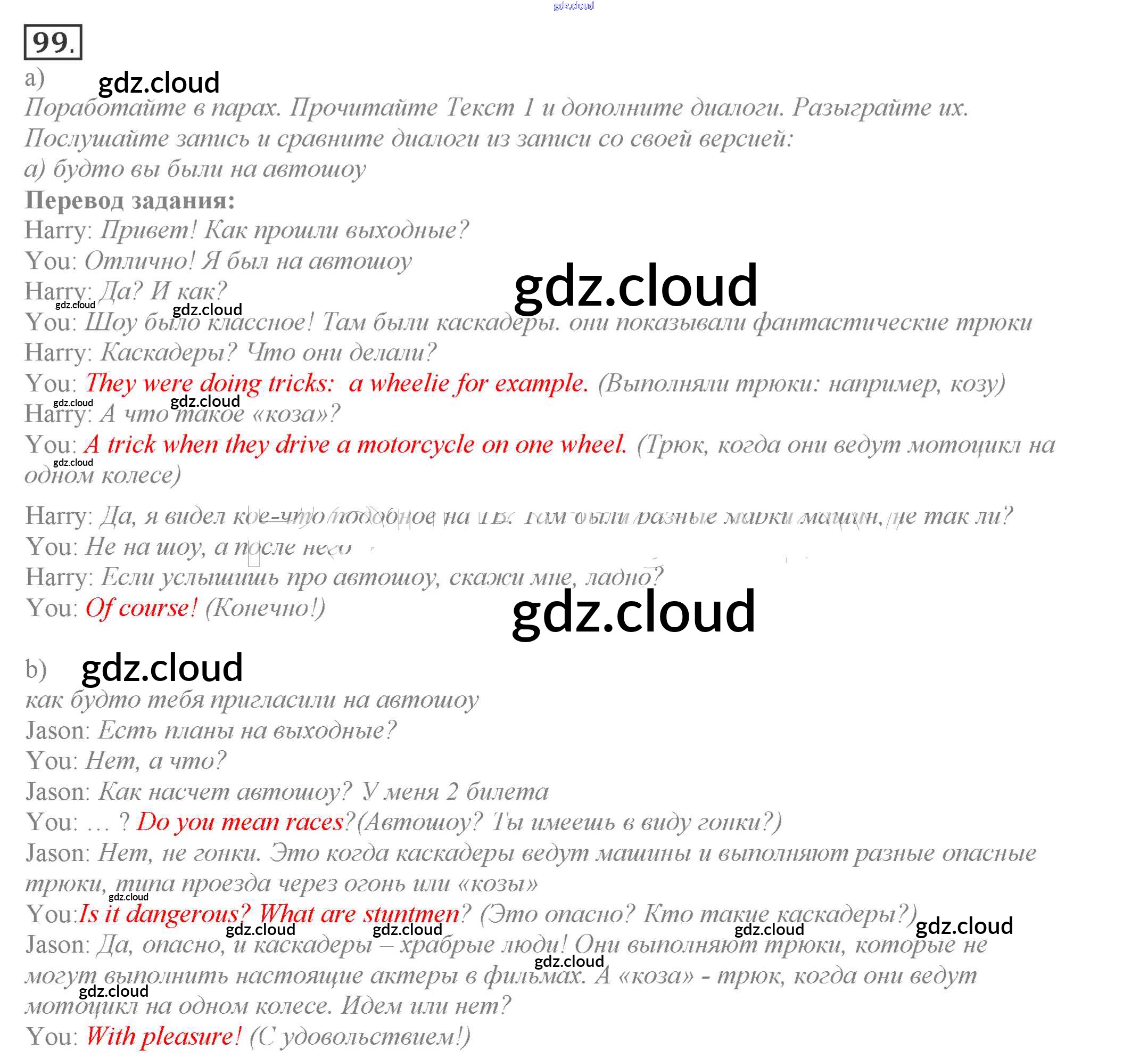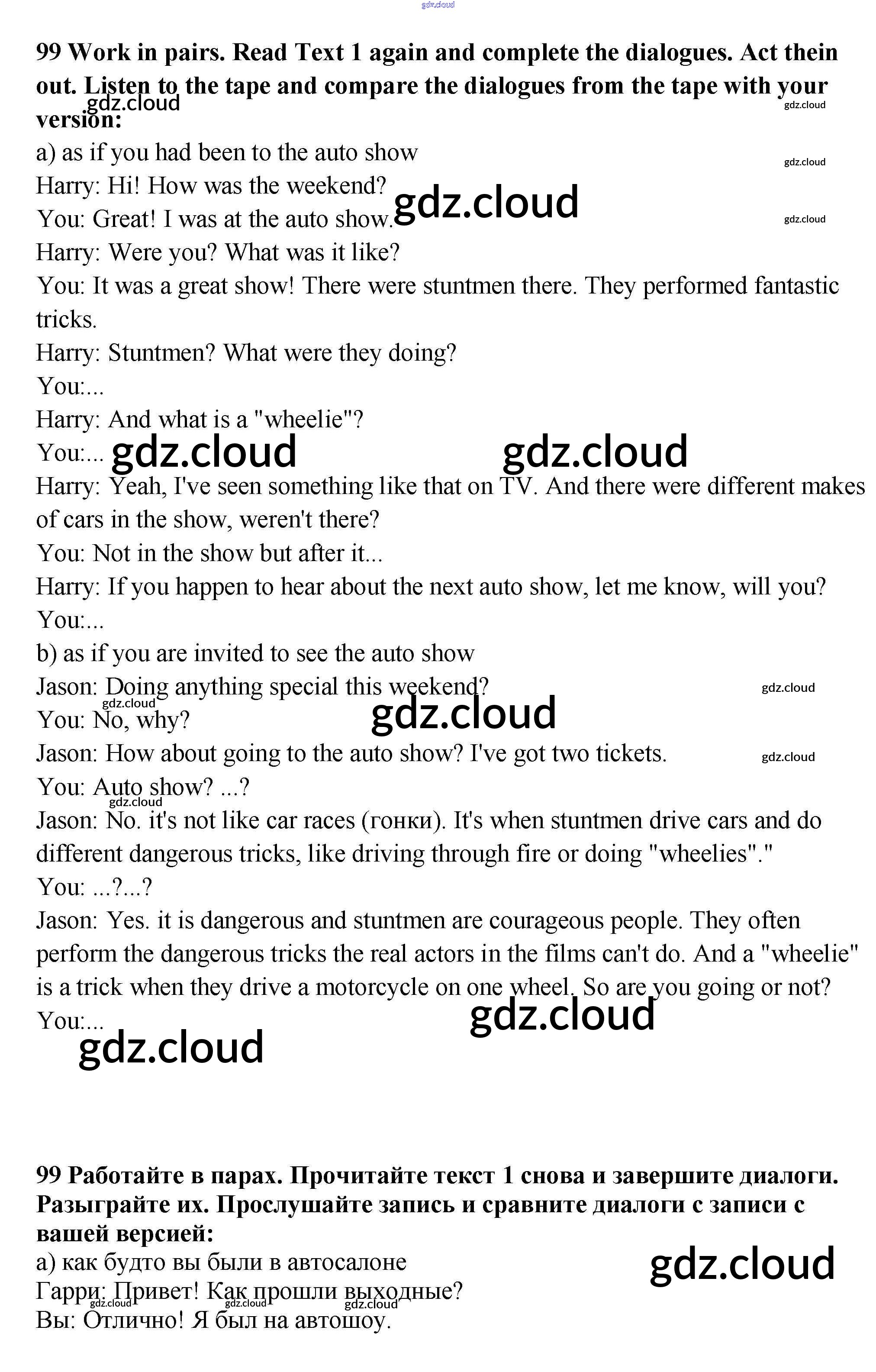 Ответ на задание 99 Учебник Английский язык за 9 (девятый) класс Биболетова, Бабушис, Кларк, Морозова Enjoy English 2014