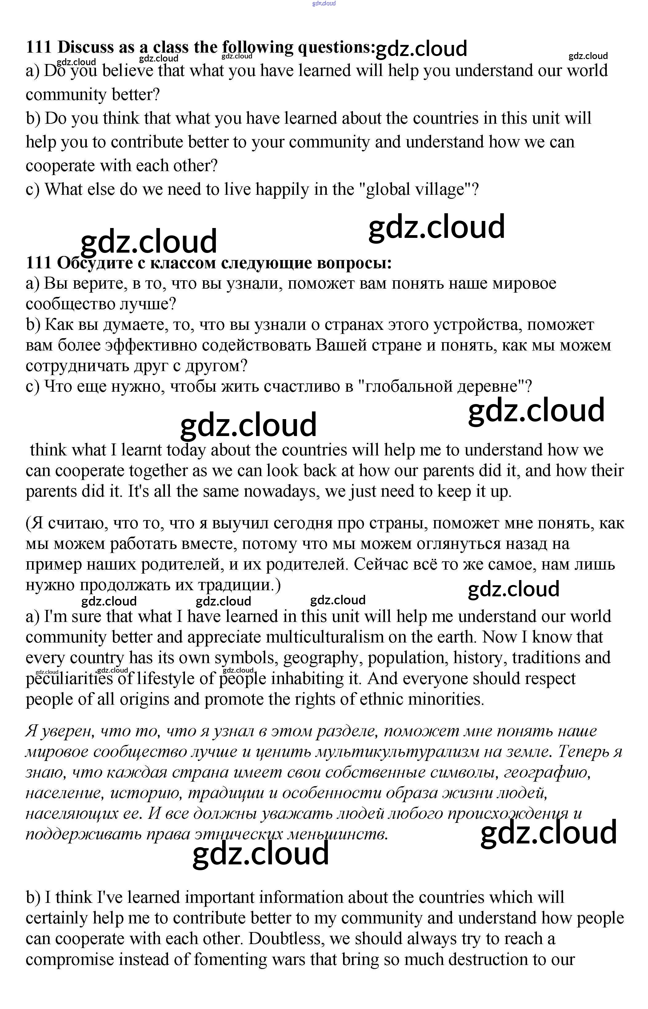 Ответ на задание 111 Учебник Английский язык за 9 (девятый) класс Биболетова, Бабушис, Кларк, Морозова Enjoy English 2014