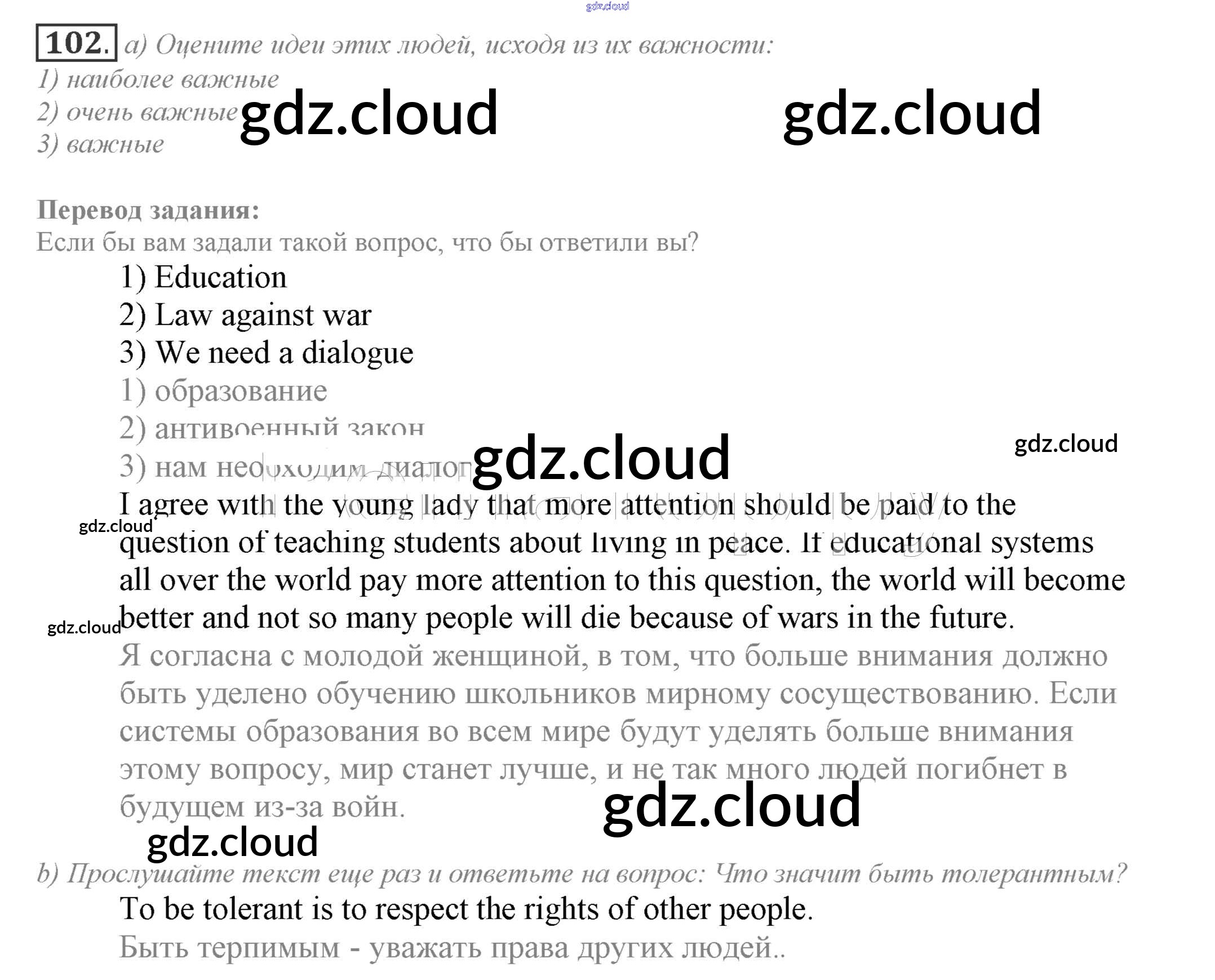 Ответ на задание 102 Учебник Английский язык за 9 (девятый) класс Биболетова, Бабушис, Кларк, Морозова Enjoy English 2014