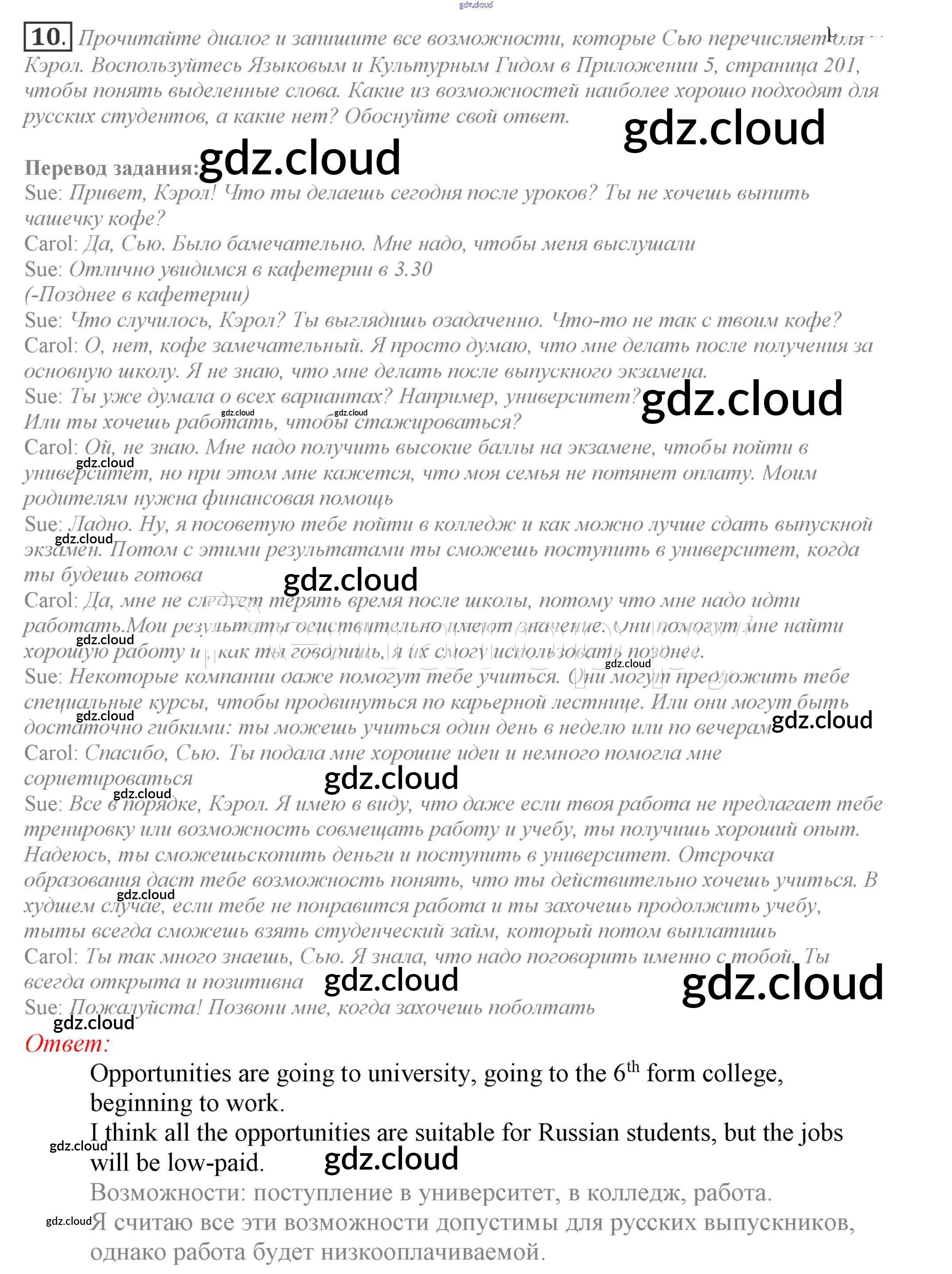 Ответ на задание 10 Учебник Английский язык за 9 (девятый) класс Биболетова, Бабушис, Кларк, Морозова Enjoy English 2014