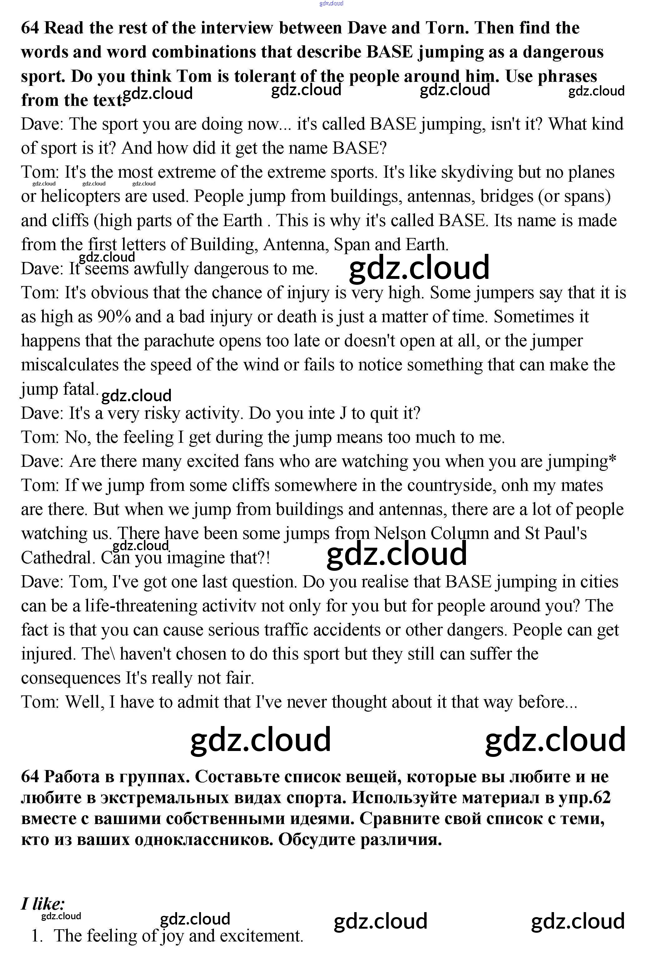 Ответ на задание 64 Учебник Английский язык за 9 (девятый) класс Биболетова, Бабушис, Кларк, Морозова Enjoy English 2014