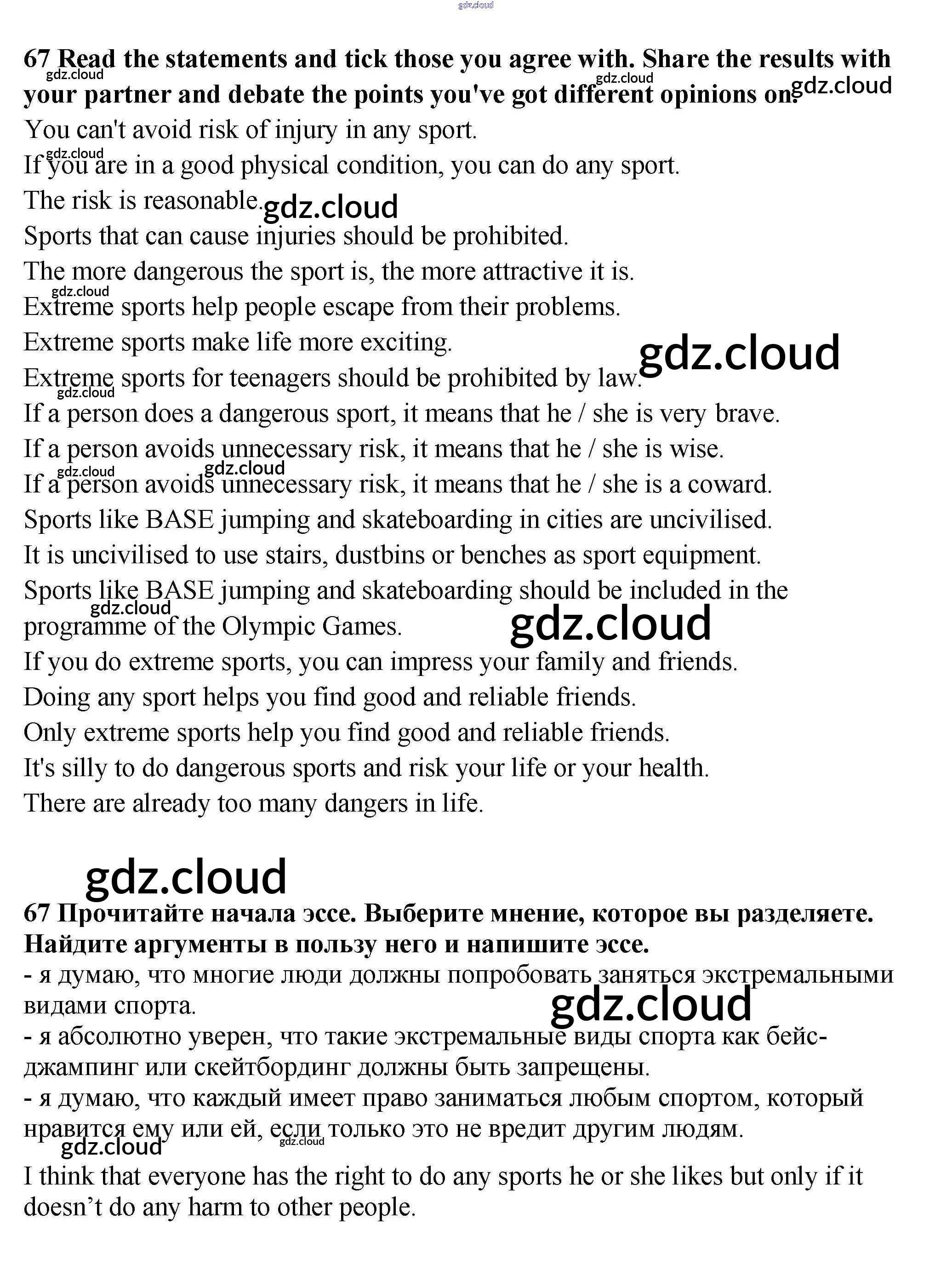 Ответ на задание 67 Учебник Английский язык за 9 (девятый) класс Биболетова, Бабушис, Кларк, Морозова Enjoy English 2014