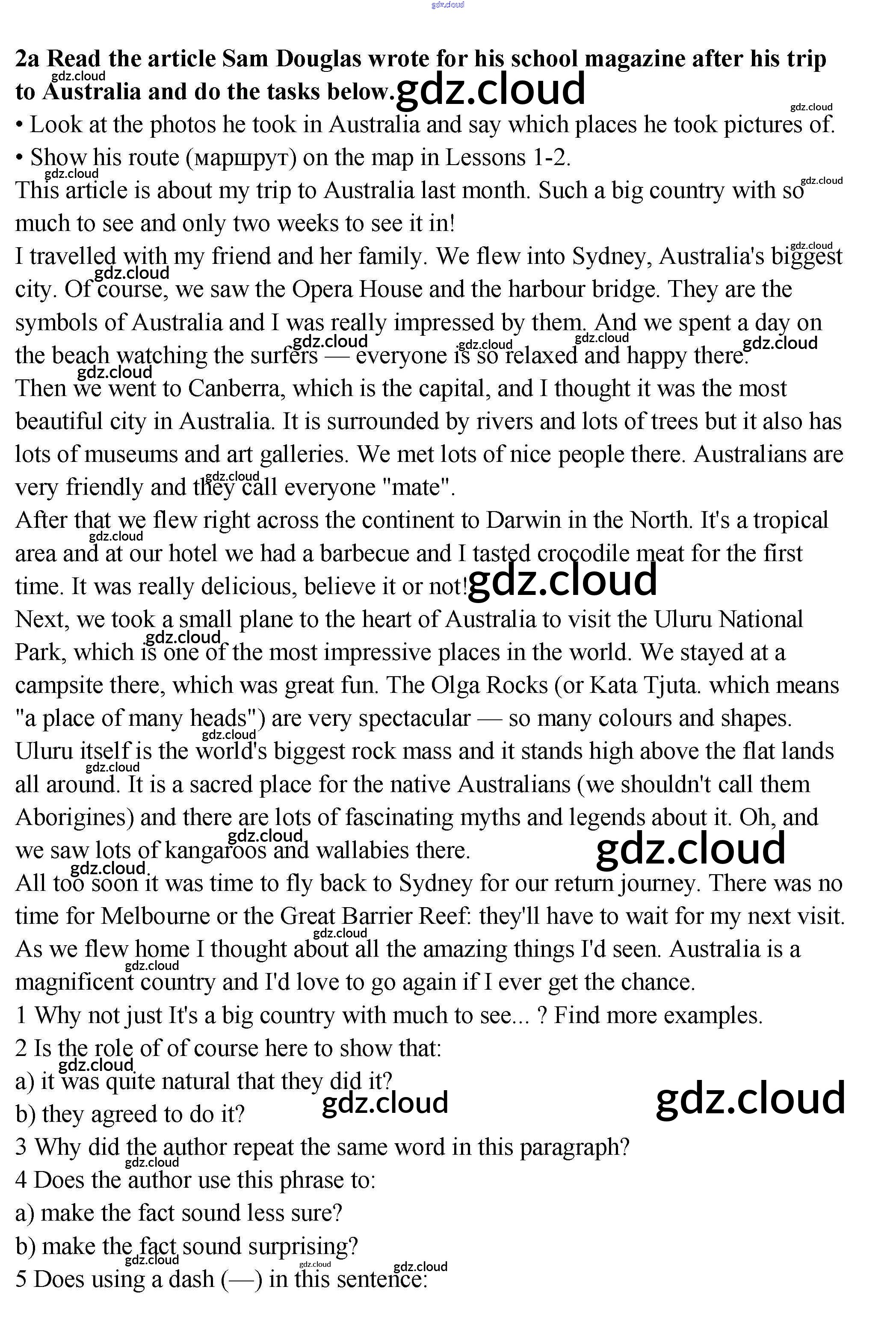 Lesson 6 Ответы к Unit 5. Let's travel Australia! по Английскому языку 9 класс Учебник Гроза New Millennium Титул