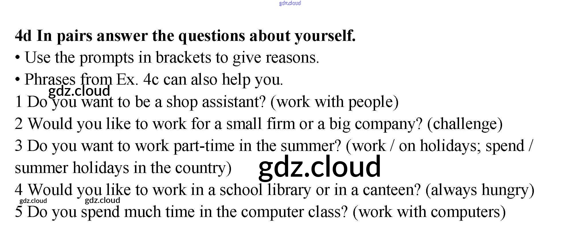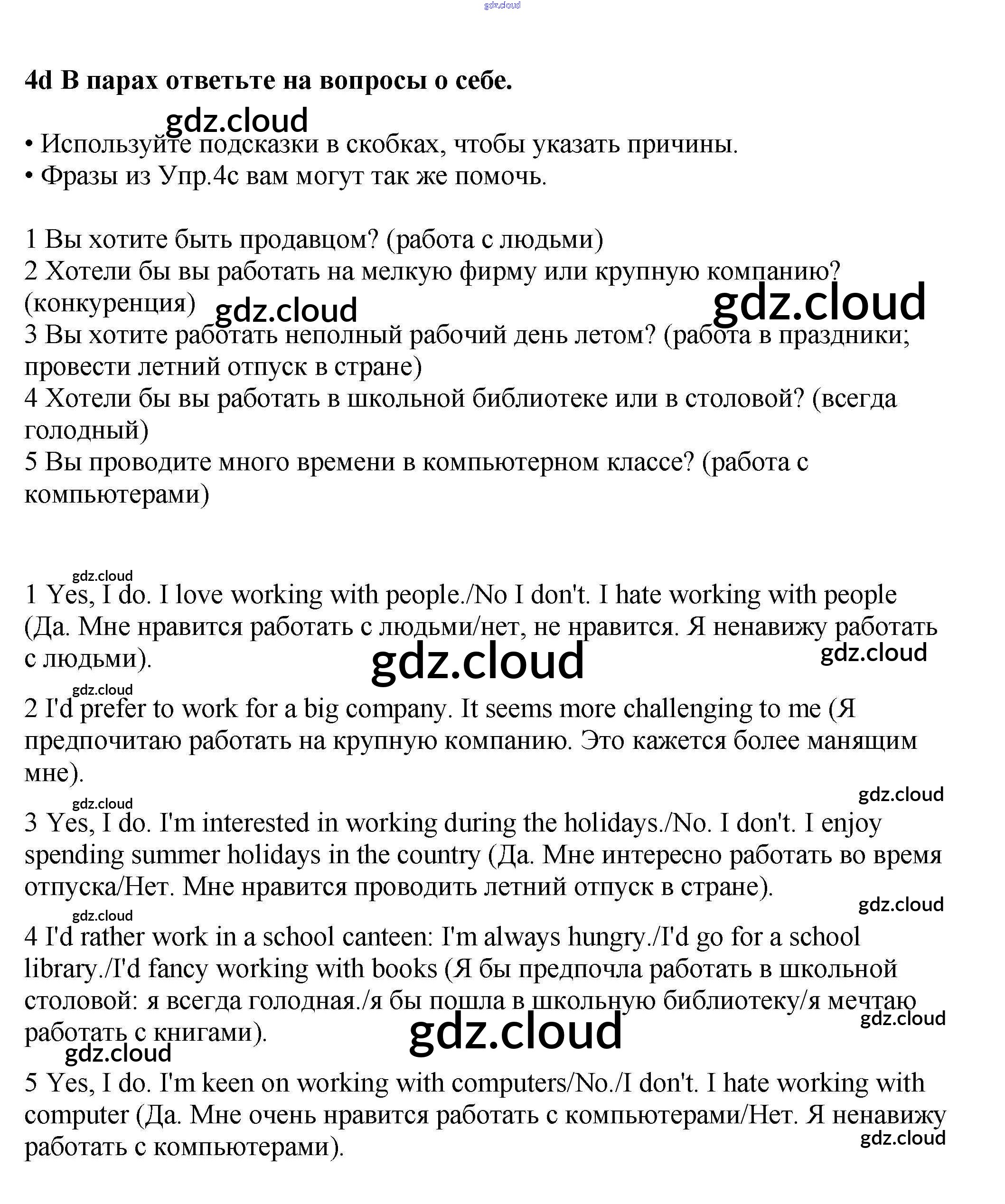 Ответ на задание 4d Учебник Английский язык за 9 (девятый) класс Гроза, Дворецкая, Казырбаева, Клименко New Millennium 2010