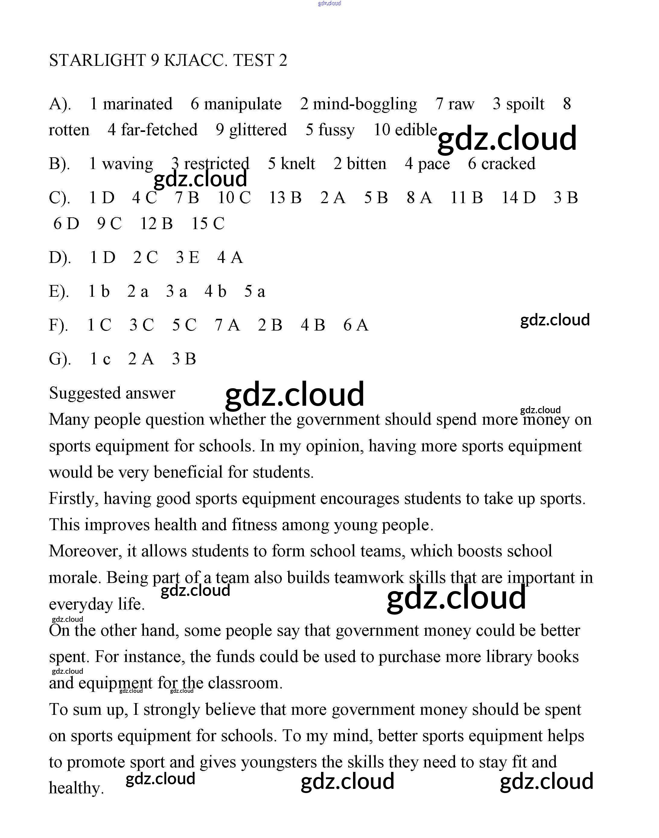 Ответы. Тесты по Английскому языку 9 класс Контрольные задания Баранова Starlight Углубленный уровень Просвещение