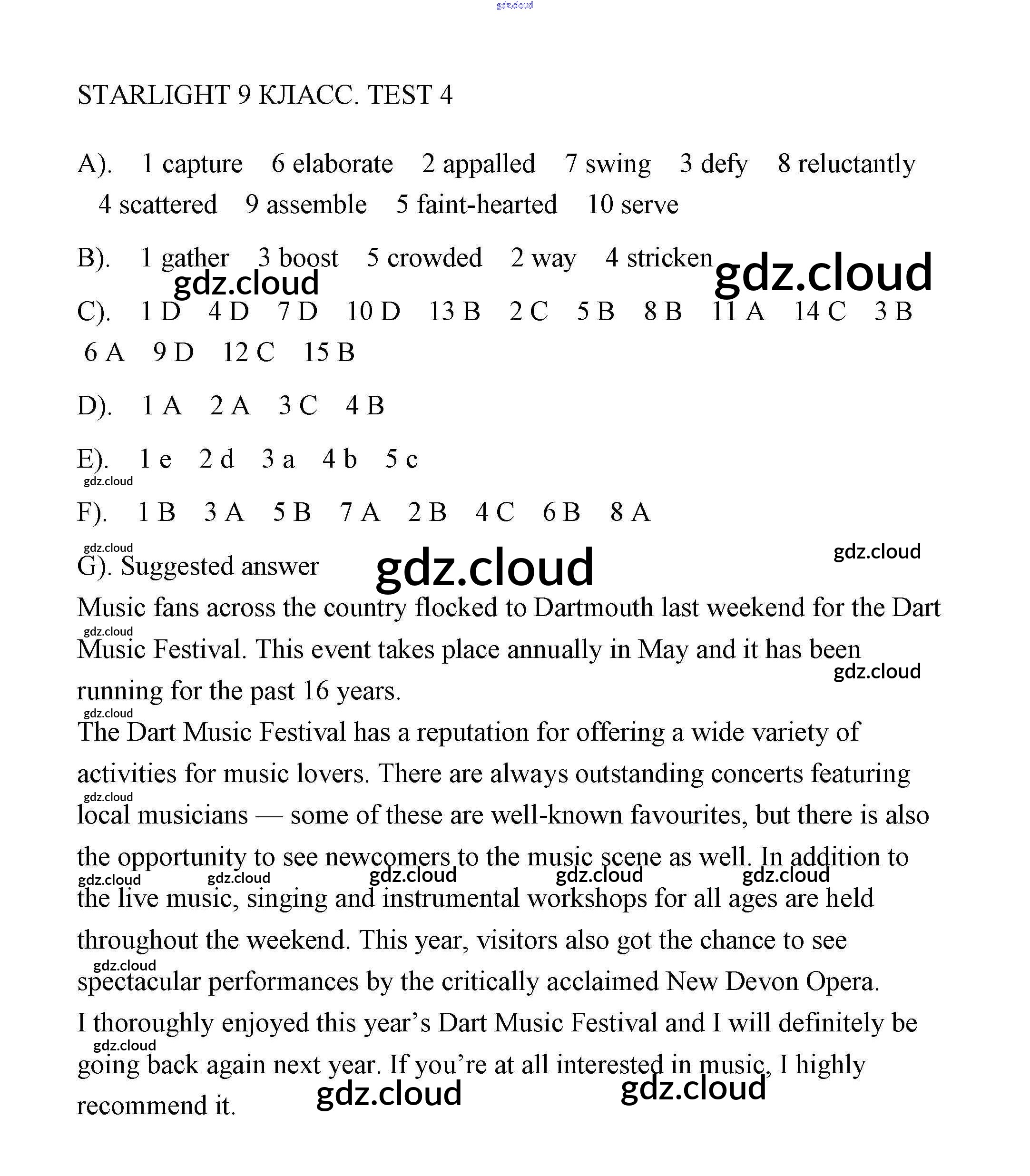 Ответы. Тесты по Английскому языку 9 класс Контрольные задания Баранова Starlight Углубленный уровень Просвещение