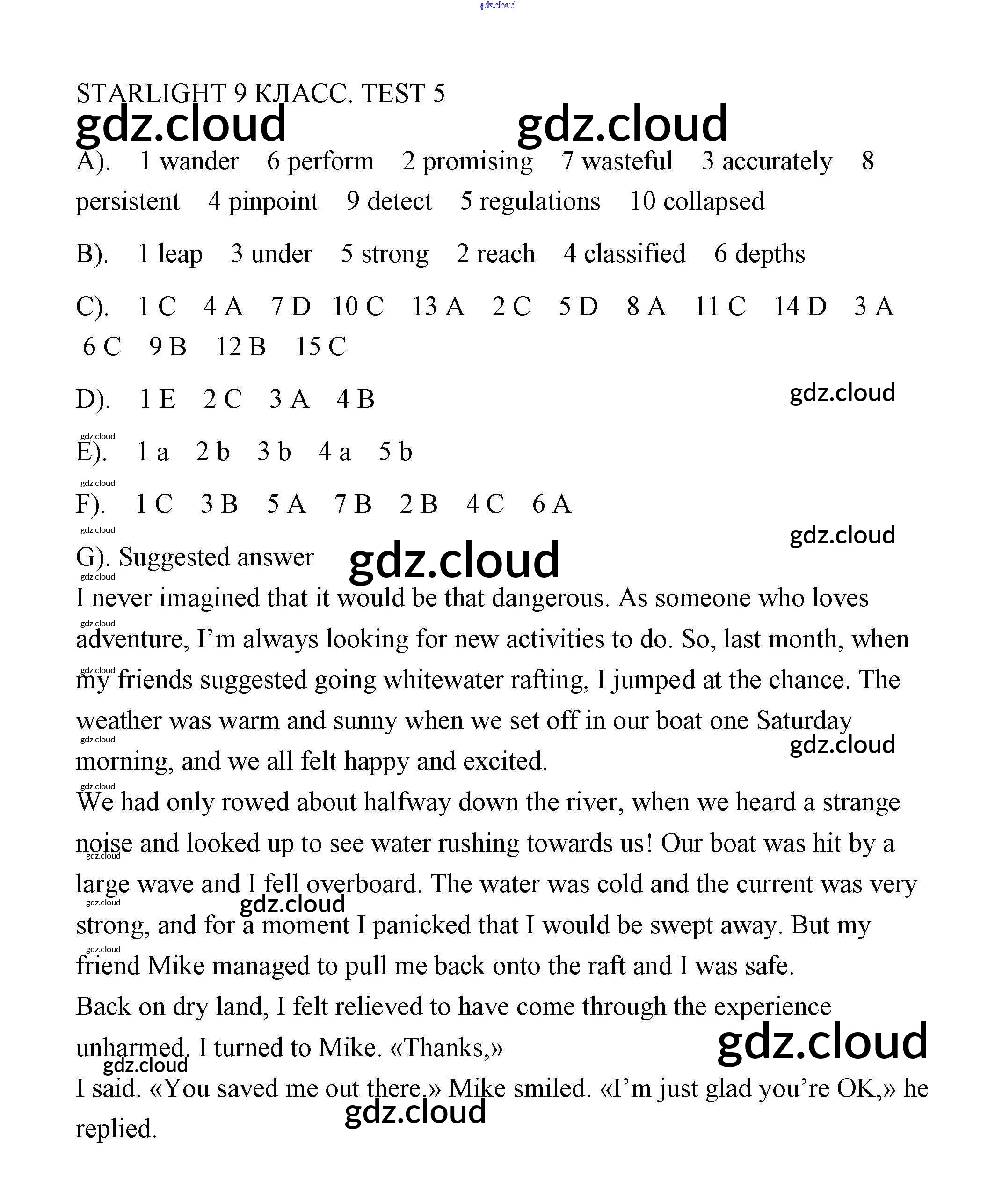 Ответ на задание 5 Контрольные задания Английский язык за 9 (девятый) класс Баранова, Дули, Эванс, Копылова, Мильруд Starlight Углубленный уровень 2015