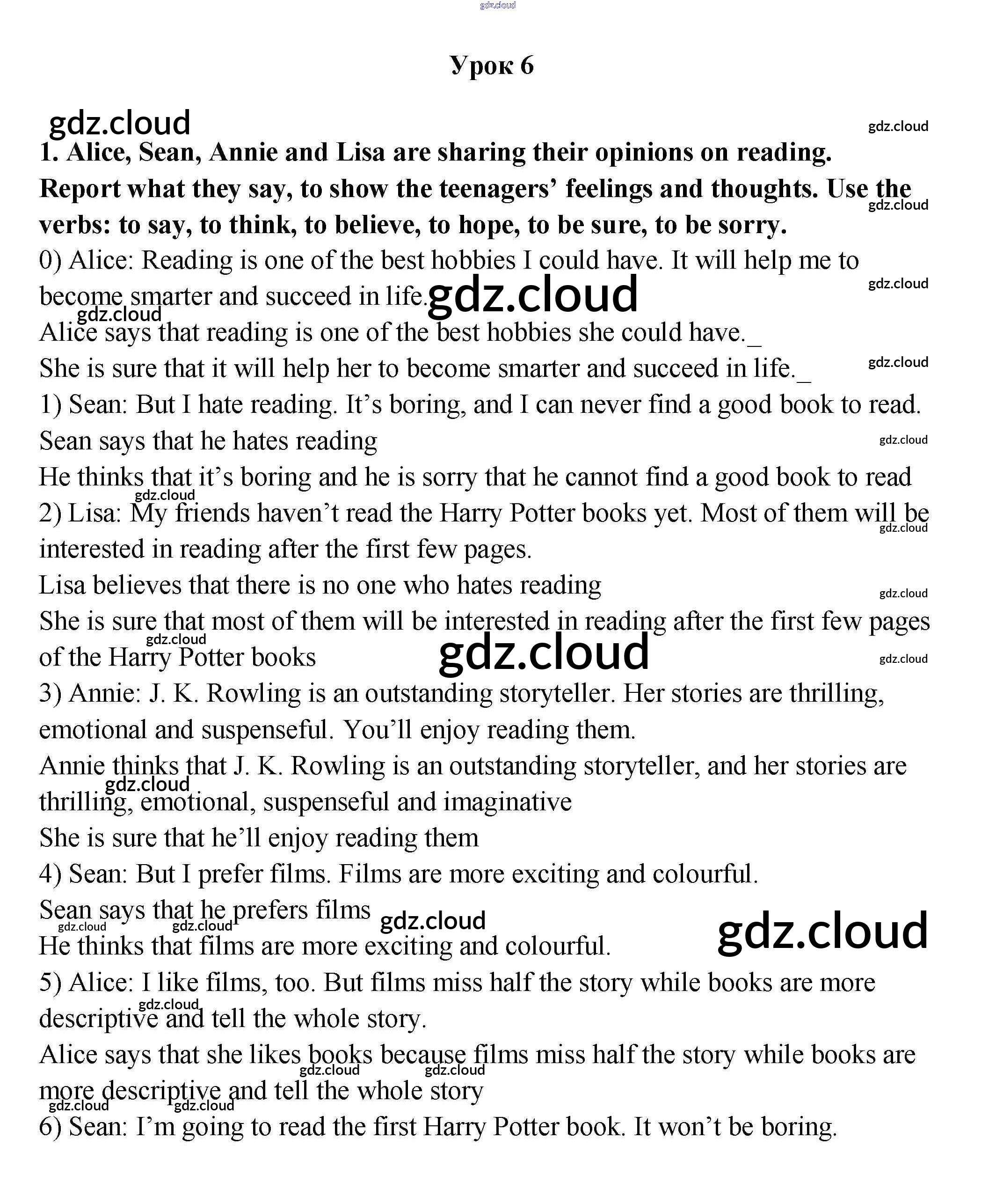 Урок 6 Ответы. Unit 1. Reading...? Why not? по Английскому языку 9 класс Рабочая тетрадь Кузовлев УМК Просвещение
