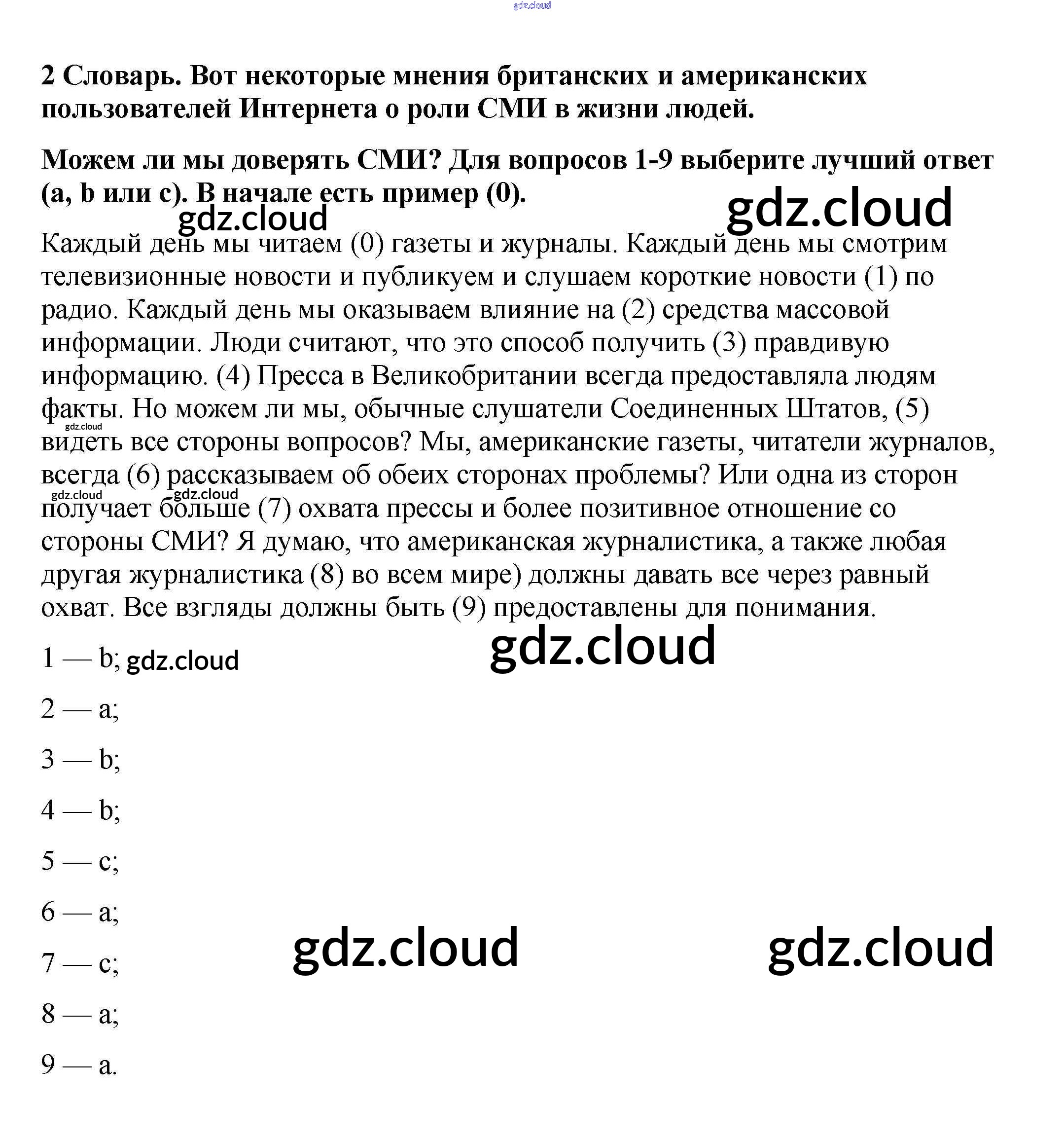 Test Ответы. Unit 3. What's the news? по Английскому языку 9 класс Рабочая тетрадь Кузовлев УМК Просвещение