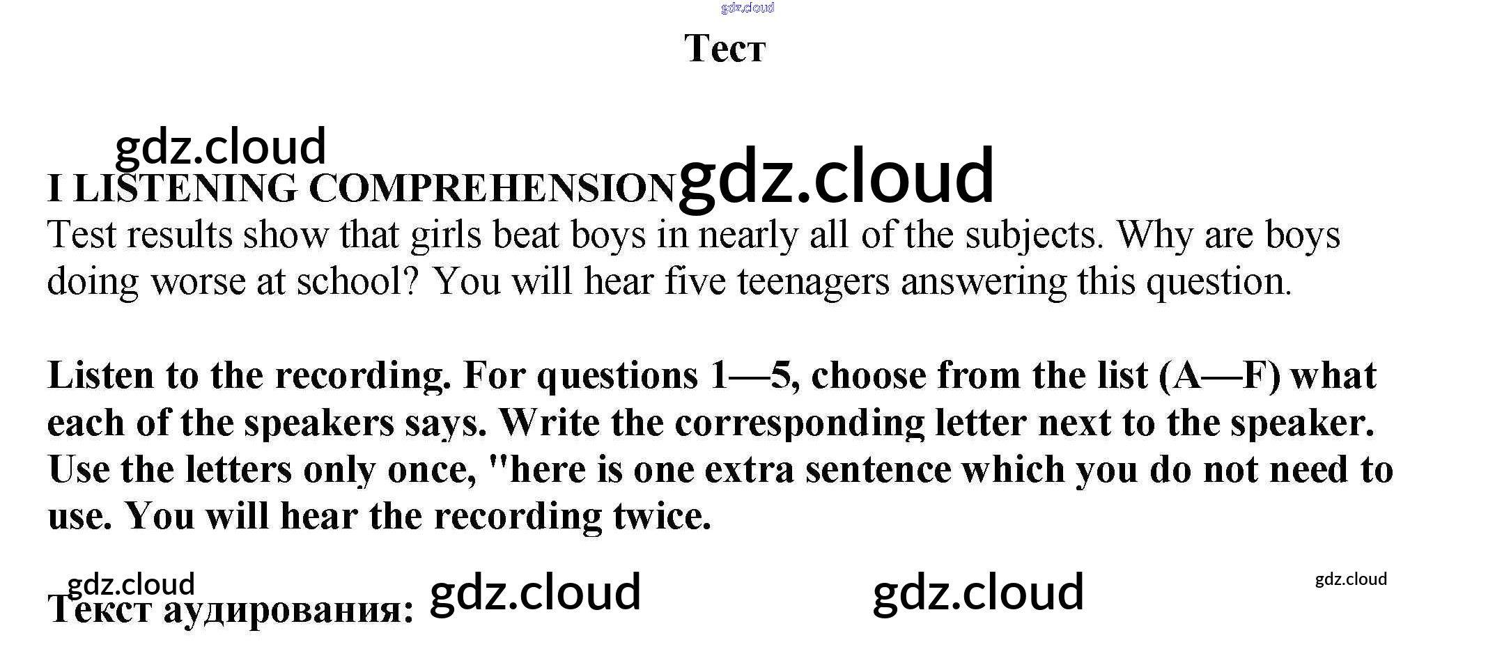 Test Ответы. Unit 4. What school do you go to? по Английскому языку 9 класс Рабочая тетрадь Кузовлев УМК Просвещение