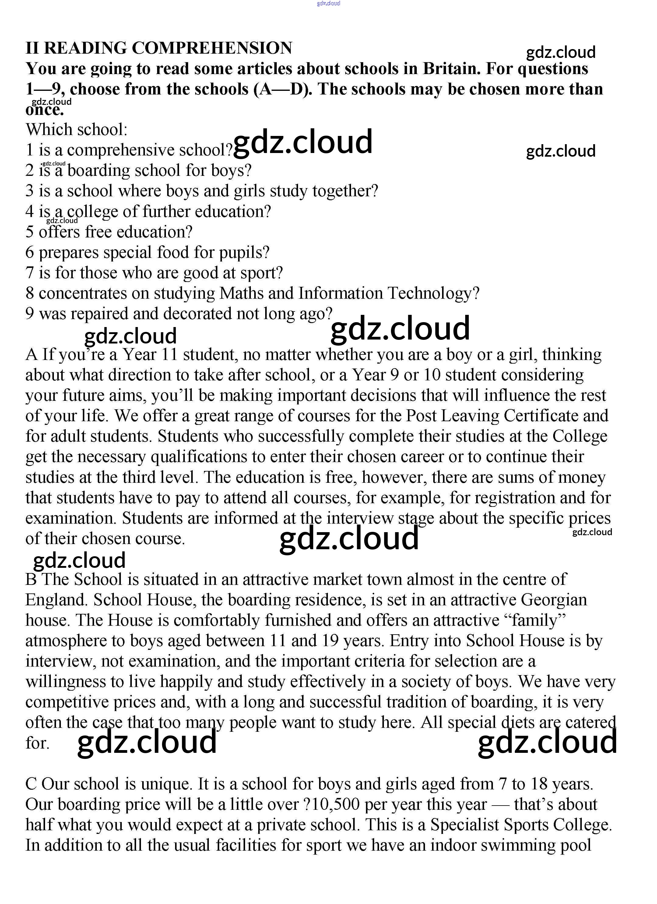 Test Ответы. Unit 4. What school do you go to? по Английскому языку 9 класс Рабочая тетрадь Кузовлев УМК Просвещение