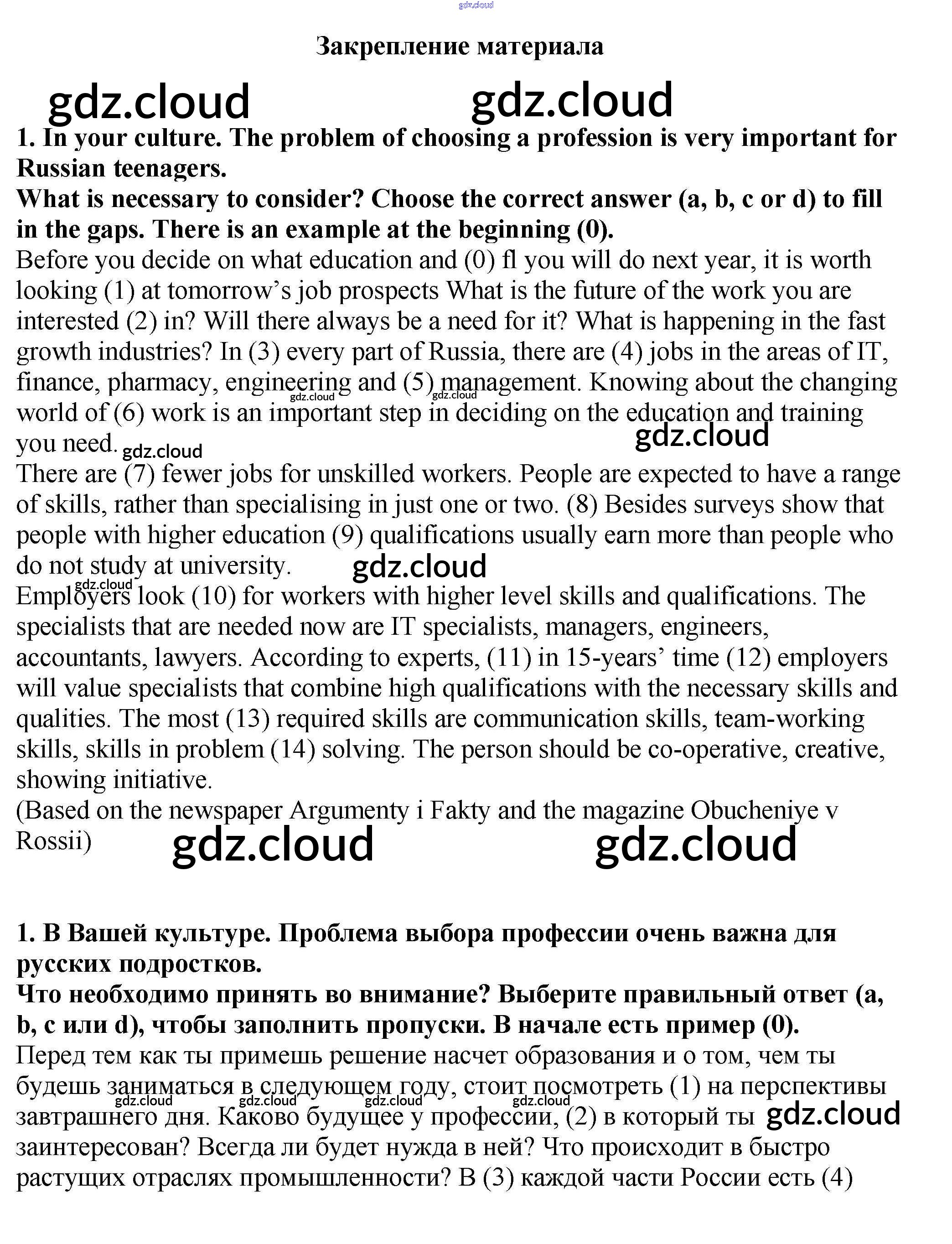 Ответ на задание 1 Рабочая тетрадь Английский язык за 9 (девятый) класс Кузовлев, Перегудова, Лапа, Дуванова УМК 2016