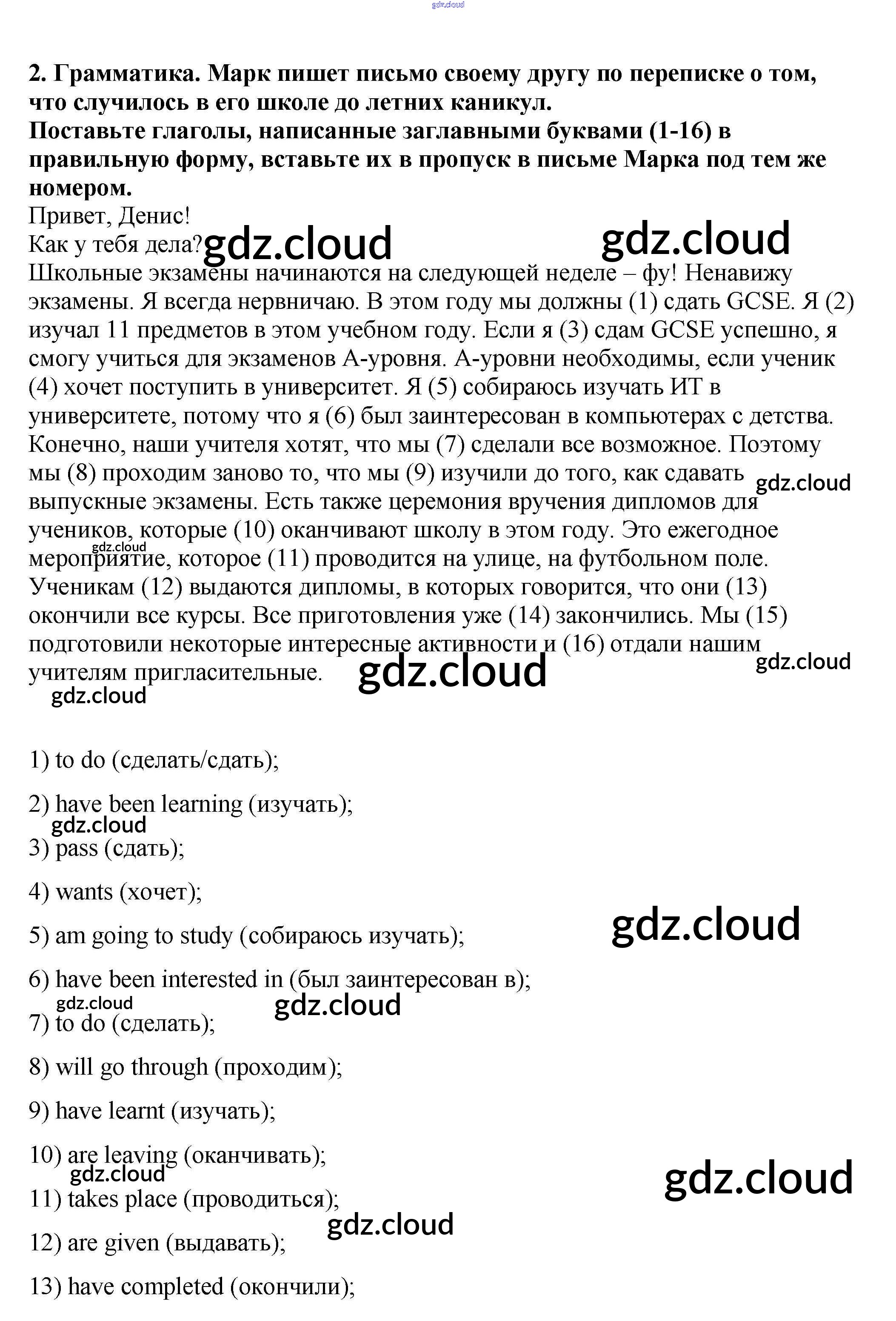 Ответ на задание 2 Рабочая тетрадь Английский язык за 9 (девятый) класс Кузовлев, Перегудова, Лапа, Дуванова УМК 2016