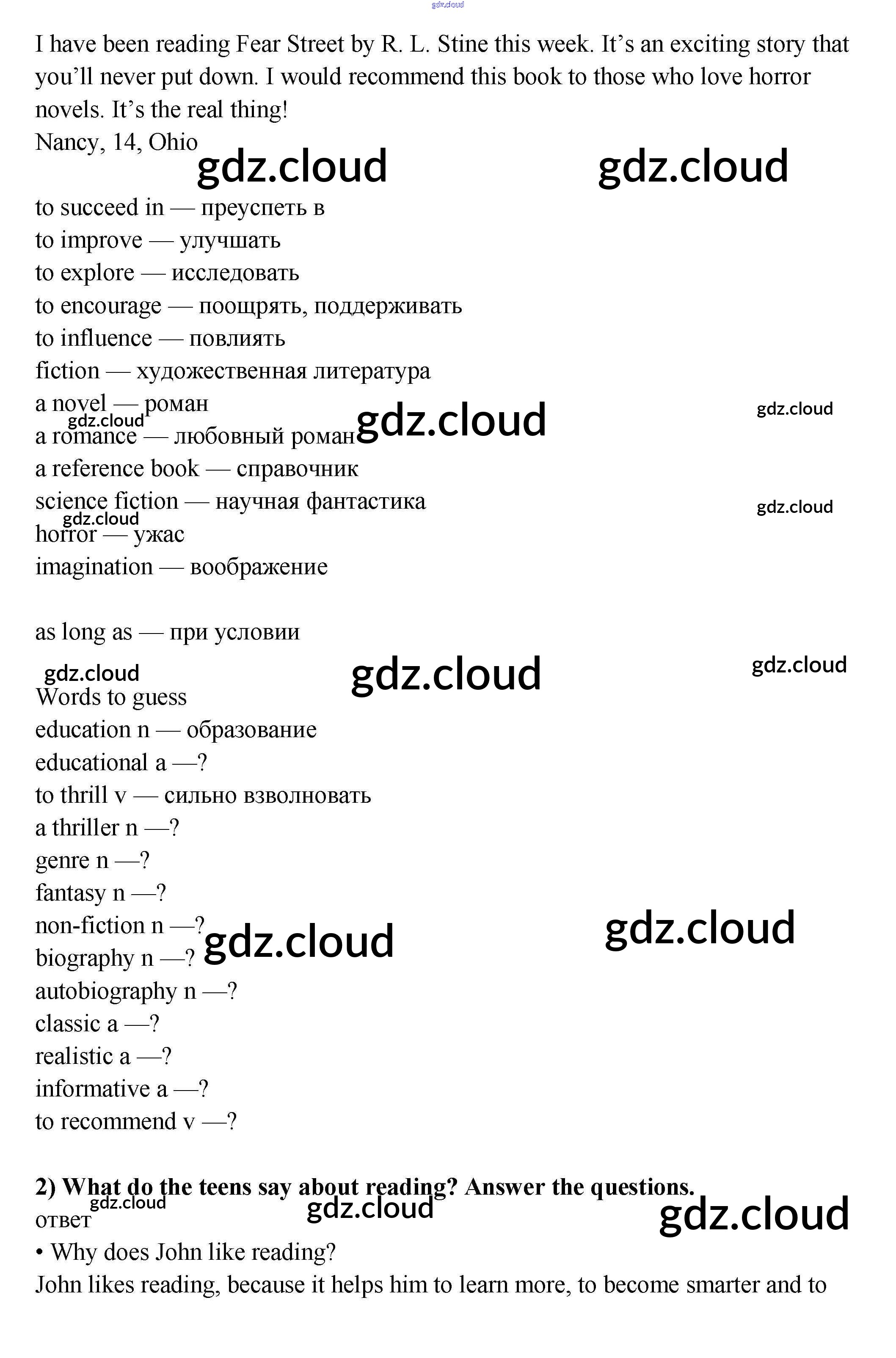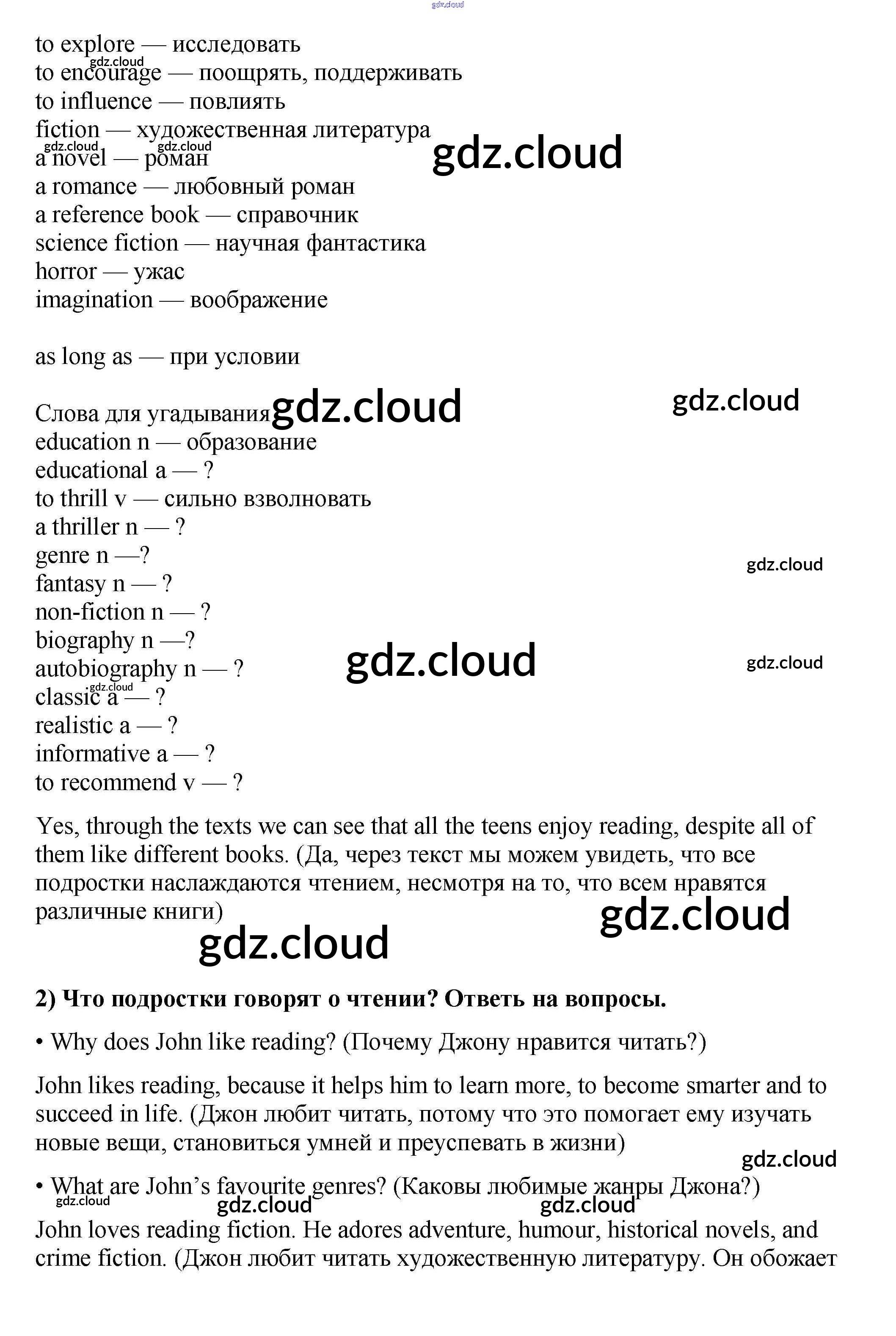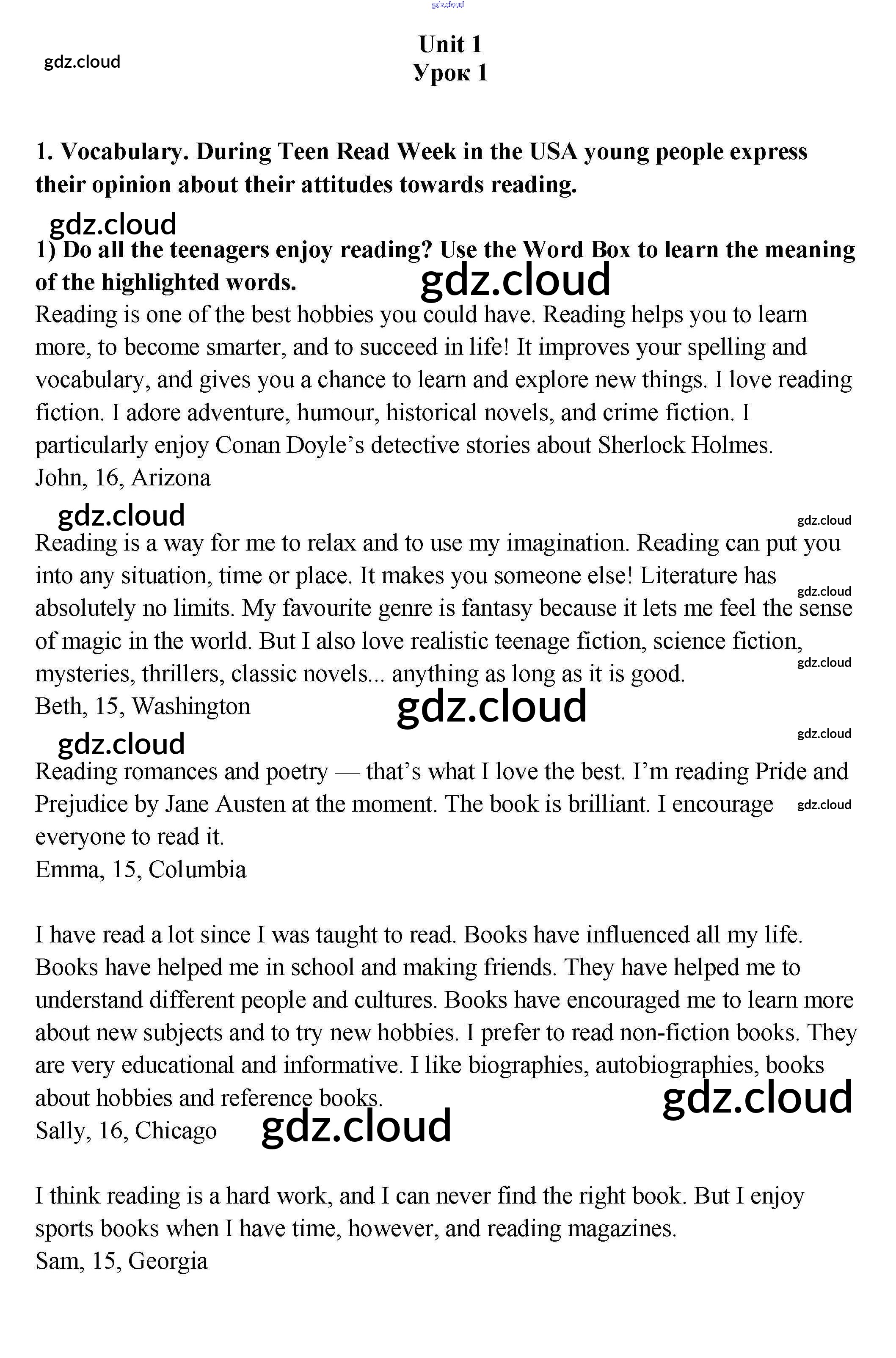 Урок 1 Ответы к Unit 1. Reading..? Why not? по Английскому языку 9 класс Учебник Кузовлев УМК Просвещение