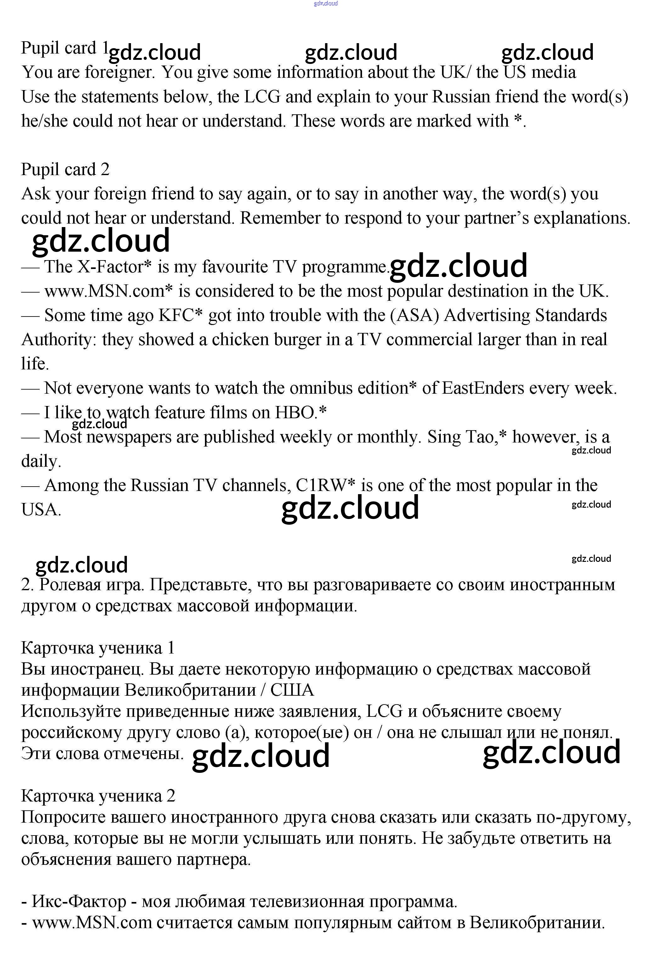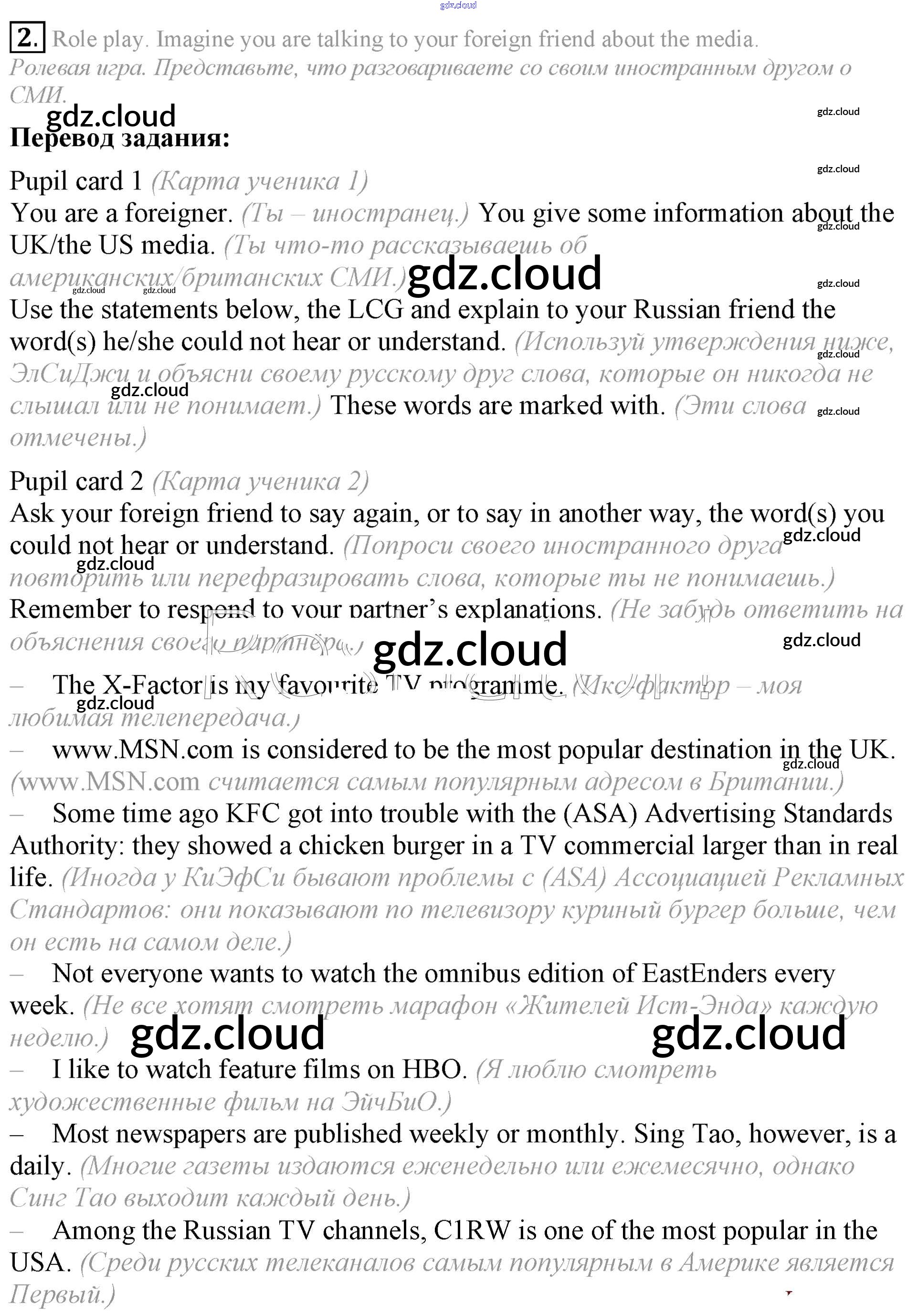 Ответ на задание 2 Учебник Английский язык за 9 (девятый) класс Кузовлев, Лапа, Перегудова УМК 2015