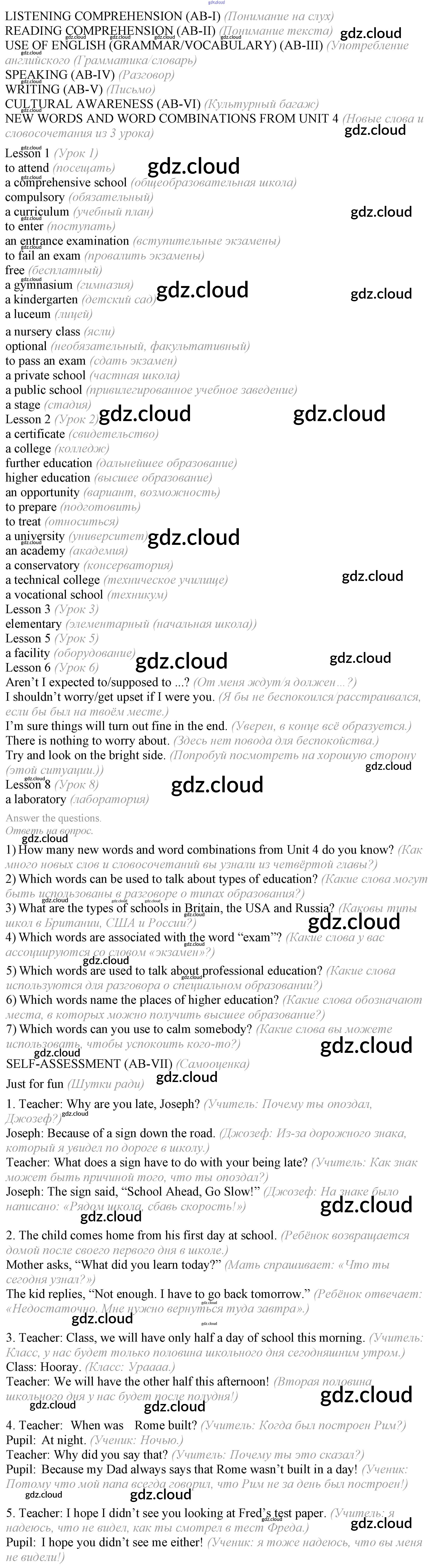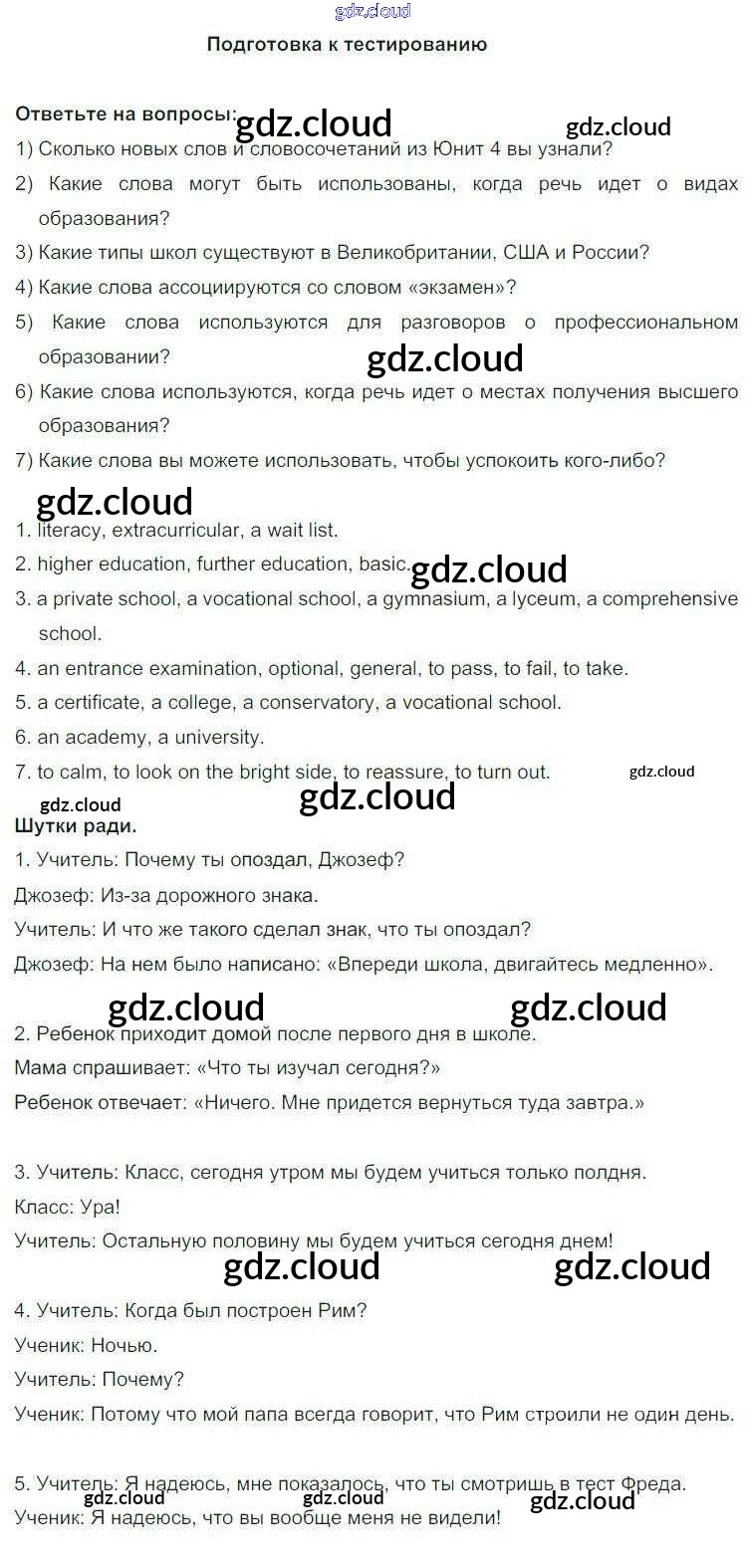 Урок 10 Ответы к Unit 4. What school do you go to? по Английскому языку 9 класс Учебник Кузовлев УМК Просвещение