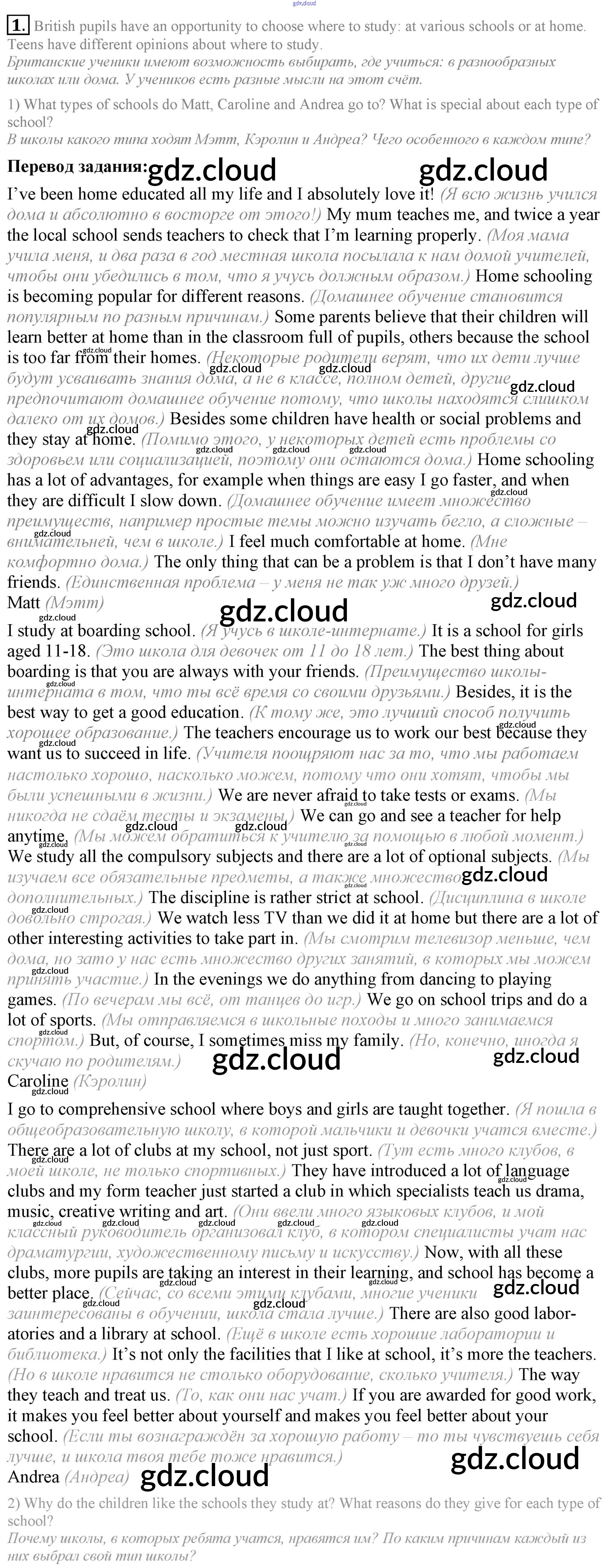 Ответ на задание 1 Учебник Английский язык за 9 (девятый) класс Кузовлев, Лапа, Перегудова УМК 2015
