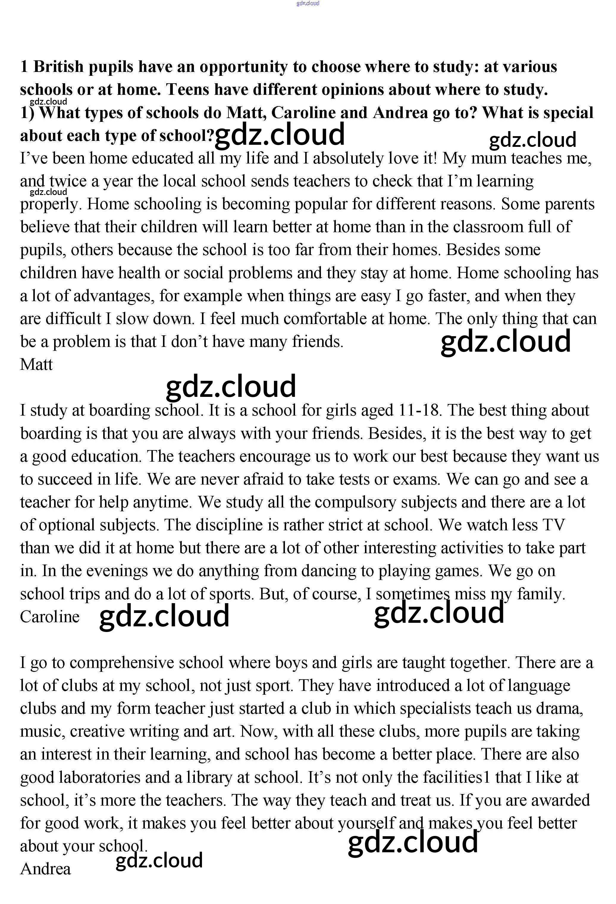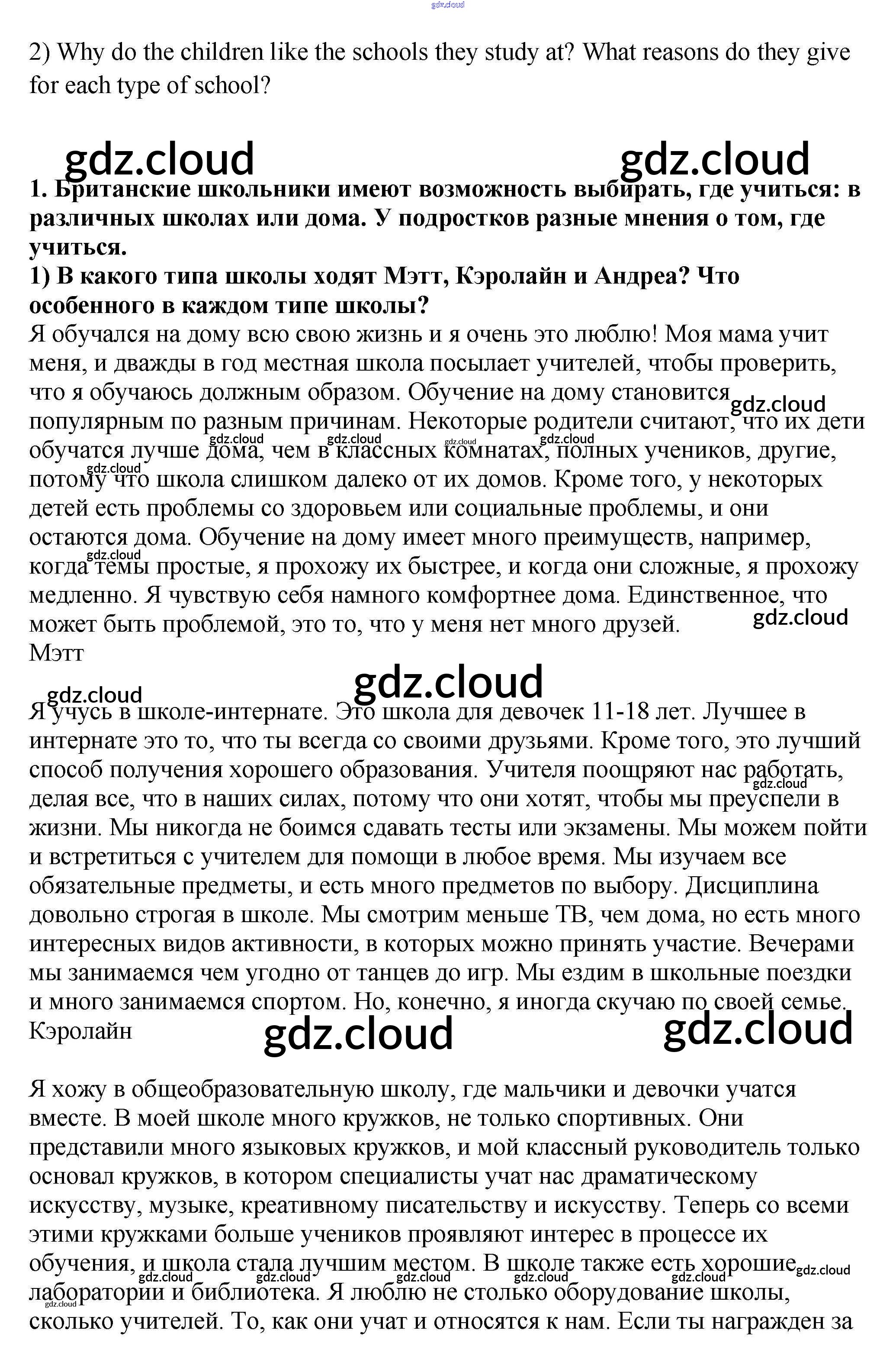 Урок 5 Ответы к Unit 4. What school do you go to? по Английскому языку 9 класс Учебник Кузовлев УМК Просвещение