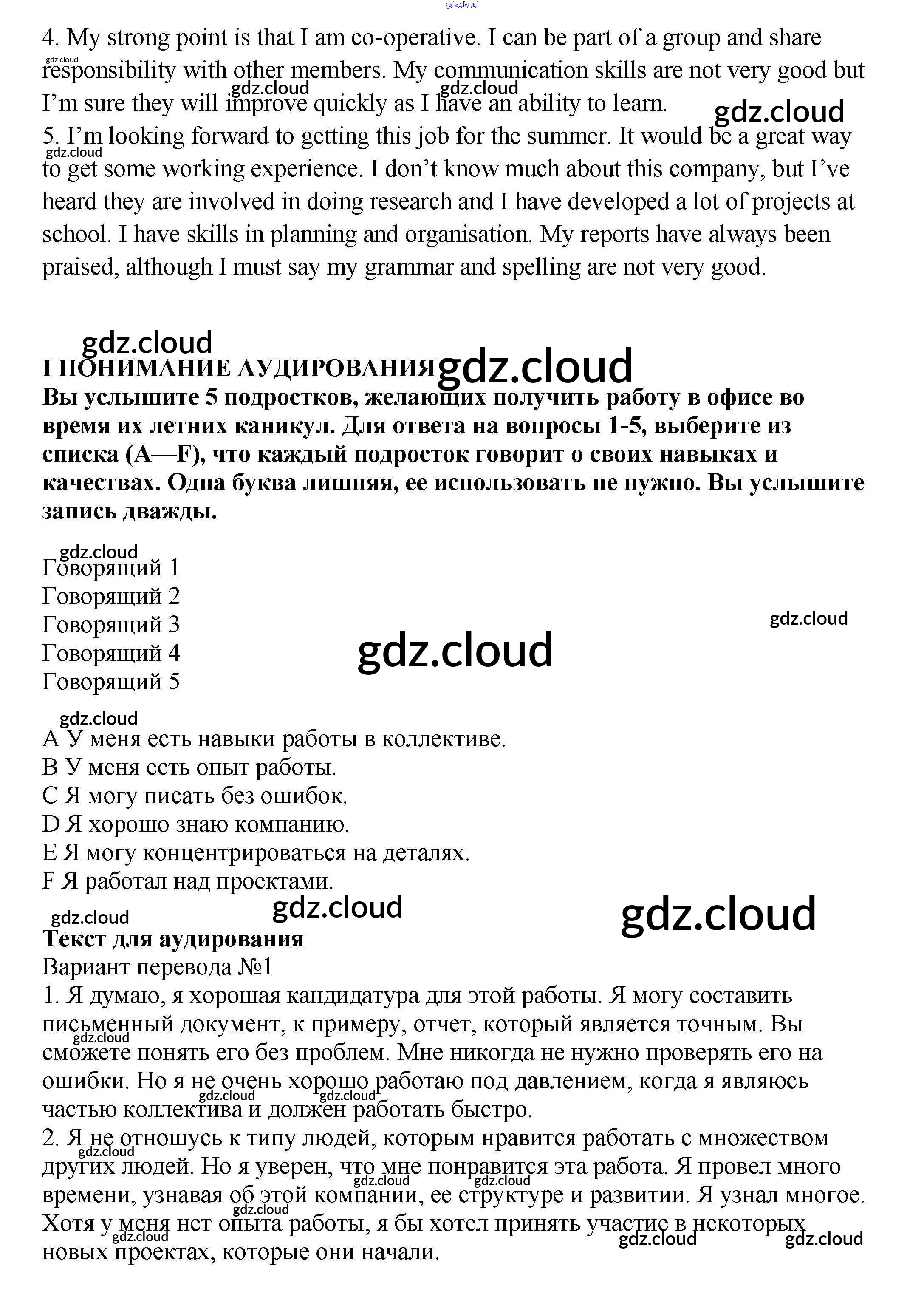 Урок 10 Ответы к Unit 5. School — what's next? по Английскому языку 9 класс Учебник Кузовлев УМК Просвещение