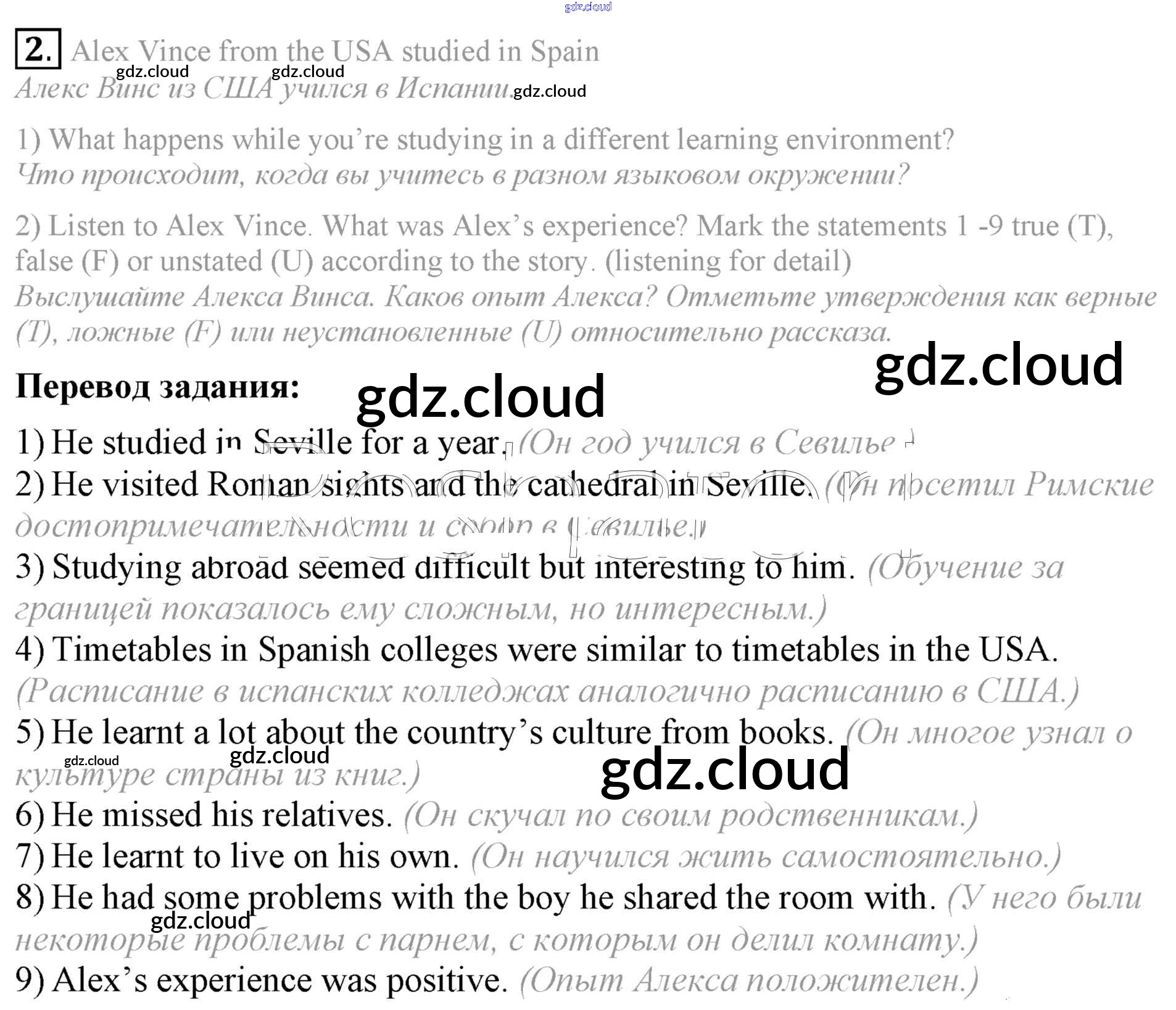 Ответ на задание 2 Учебник Английский язык за 9 (девятый) класс Кузовлев, Лапа, Перегудова УМК 2015