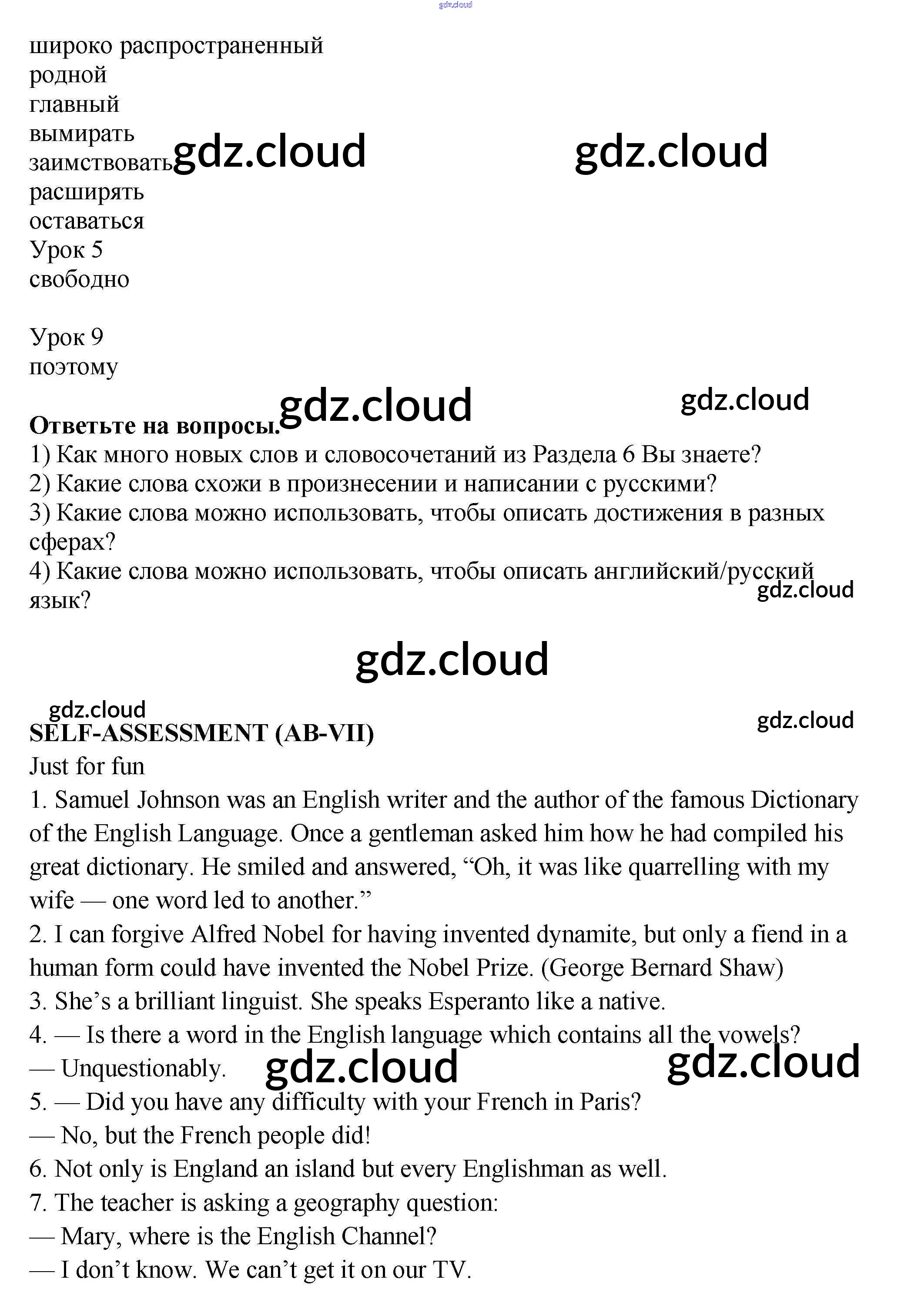 Урок 11 Ответы к Unit 6. My country in the world по Английскому языку 9 класс Учебник Кузовлев УМК Просвещение
