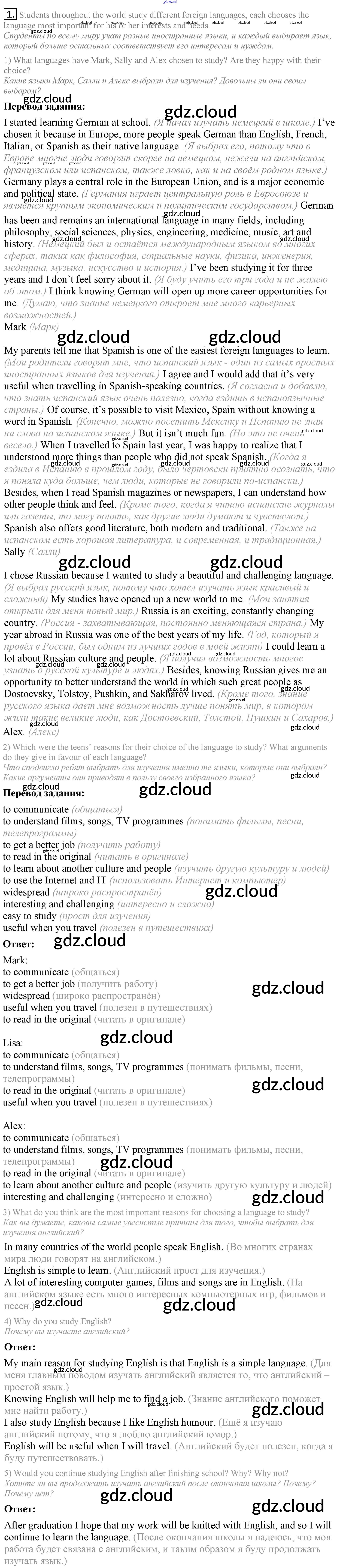 Ответ на задание 1 Учебник Английский язык за 9 (девятый) класс Кузовлев, Лапа, Перегудова УМК 2015