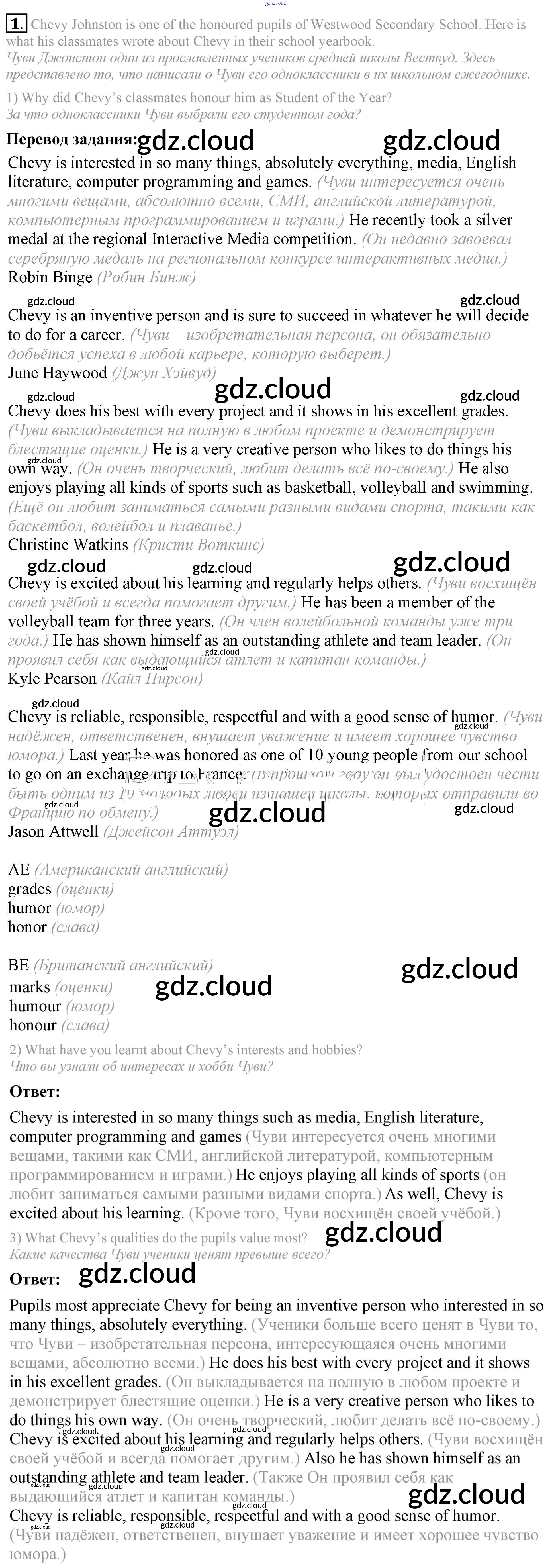 Ответ на задание 1 Учебник Английский язык за 9 (девятый) класс Кузовлев, Лапа, Перегудова УМК 2015