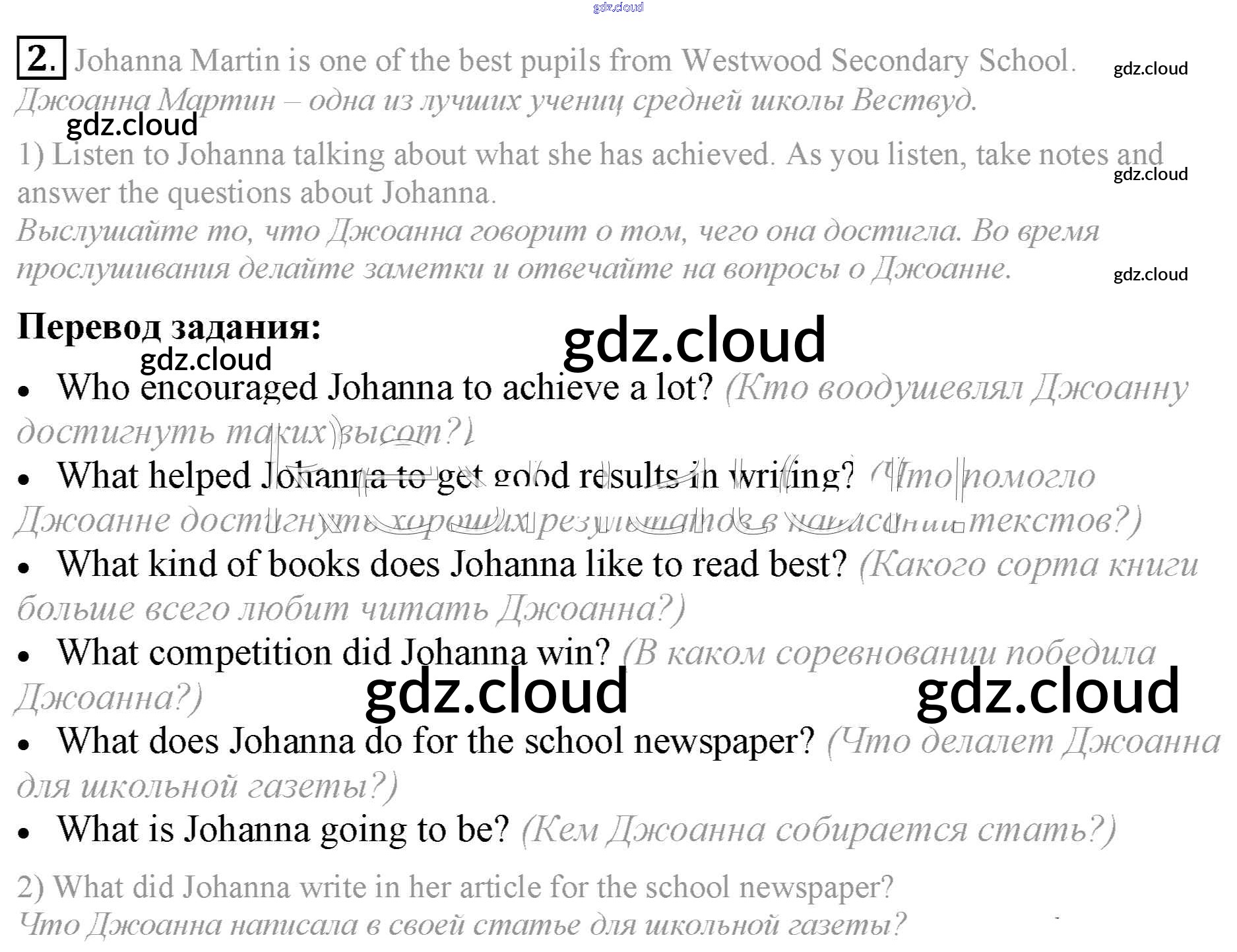 Ответ на задание 2 Учебник Английский язык за 9 (девятый) класс Кузовлев, Лапа, Перегудова УМК 2015