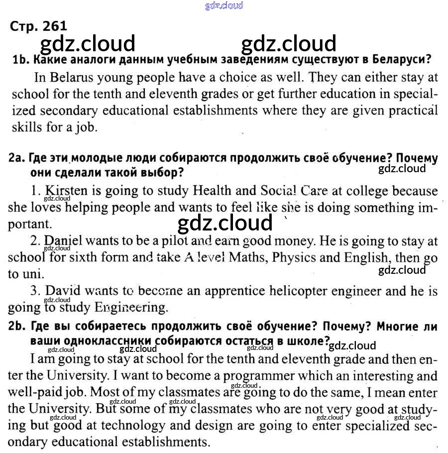 Ответ на задание 261 Учебник Английский язык за 9 (девятый) класс Лапицкая, Демченко, Волков 2018 ФГОС онлайн и без номера телефона.