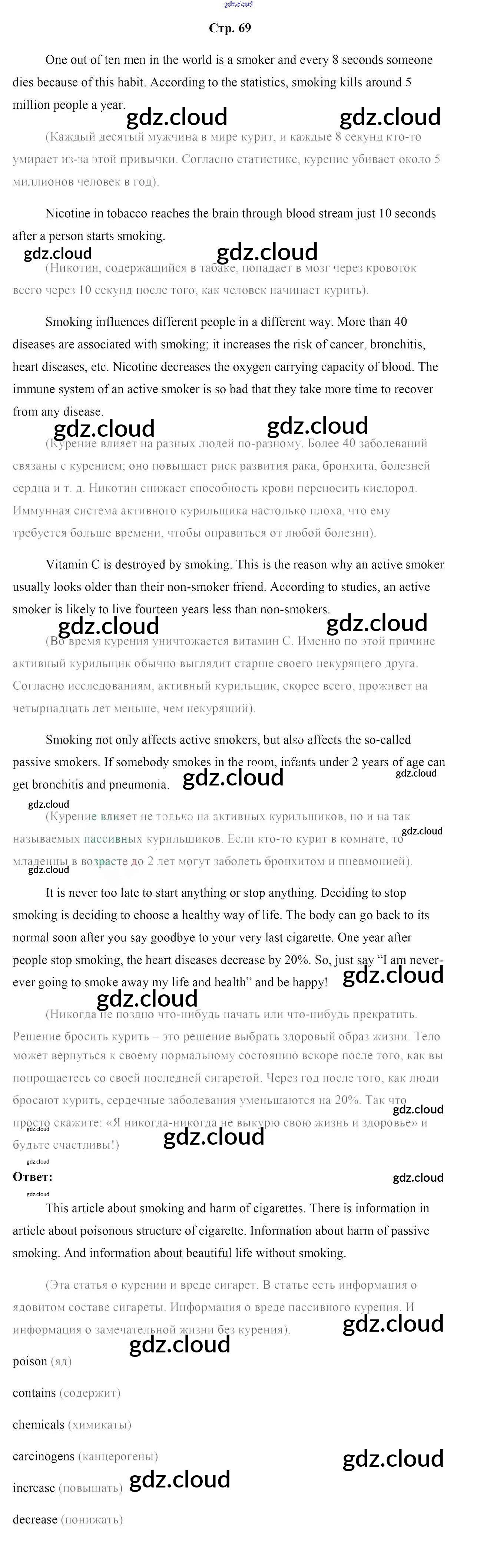 Ответ на задание 69 Учебник Английский язык за 9 (девятый) класс Лапицкая, Демченко, Волков 2018 ФГОС онлайн и без номера телефона.