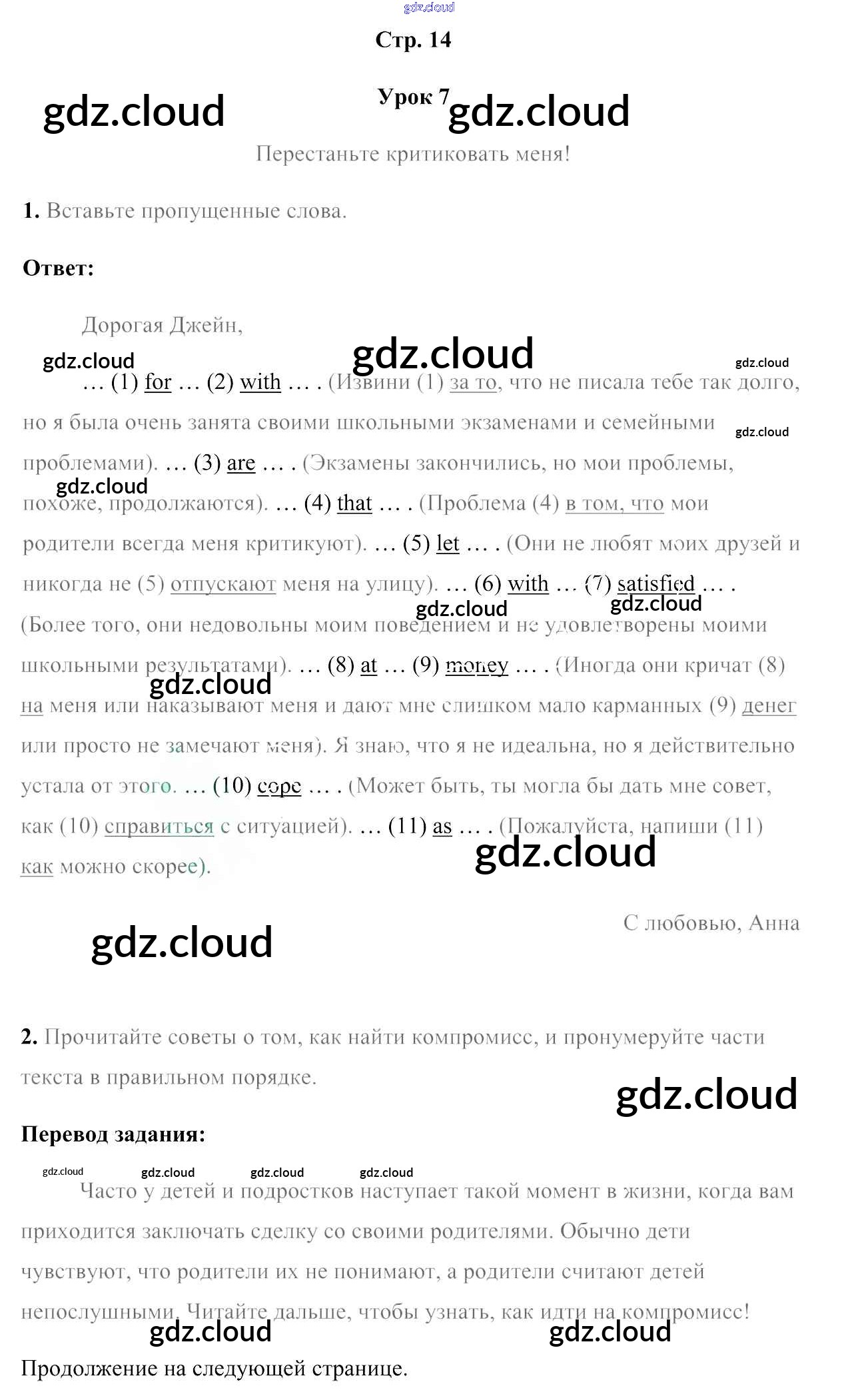 Ответ на задание стр.14 Рабочая тетрадь Английский язык за 9 (девятый) класс Лапицкая 2019 Часть 1 ФГОС онлайн и без номера телефона.