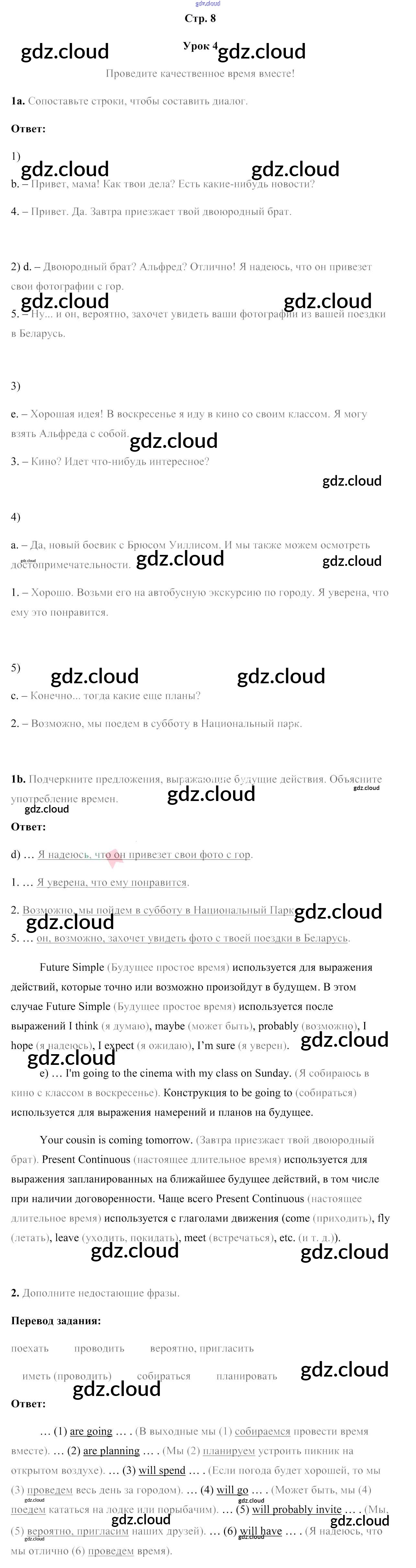 Ответ на задание стр.8 Рабочая тетрадь Английский язык за 9 (девятый) класс Лапицкая 2019 Часть 1 ФГОС онлайн и без номера телефона.