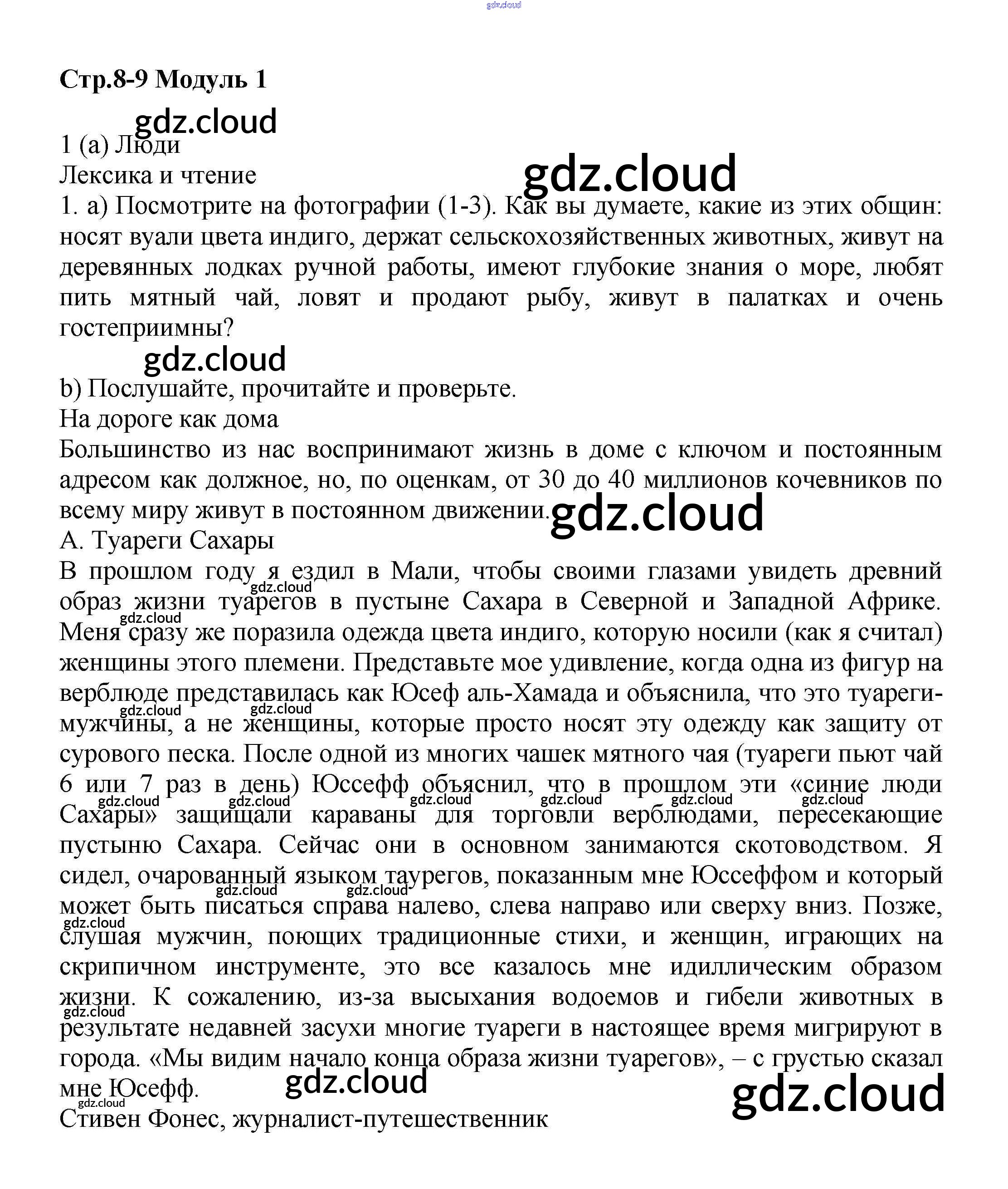 Ответ на задание стр.8-9 Учебник Английский язык за 9 (девятый) класс Баранова, Дули, Эванс, Копылова, Мильруд Starlight Углубленный уровень 2017