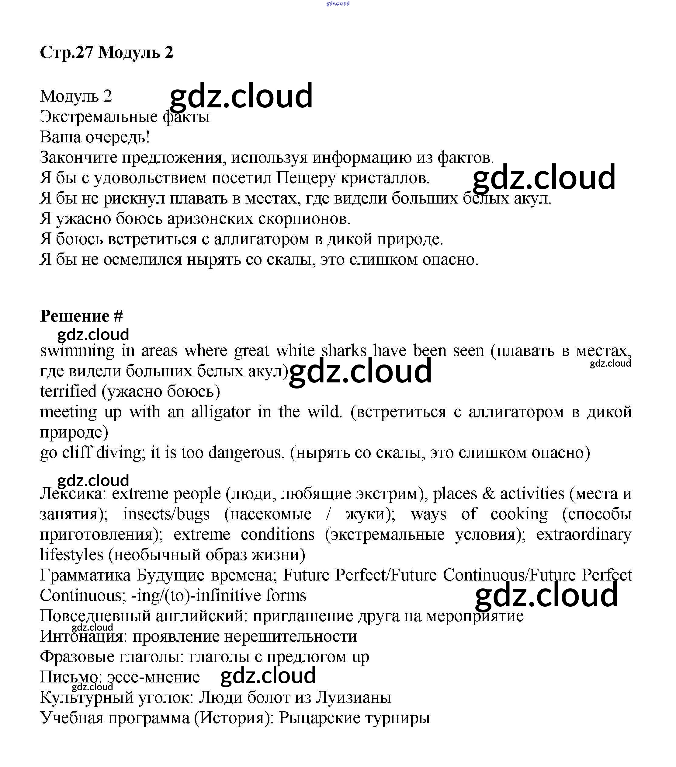 Ответ на задание стр.27 Учебник Английский язык за 9 (девятый) класс Баранова, Дули, Эванс, Копылова, Мильруд Starlight Углубленный уровень 2017