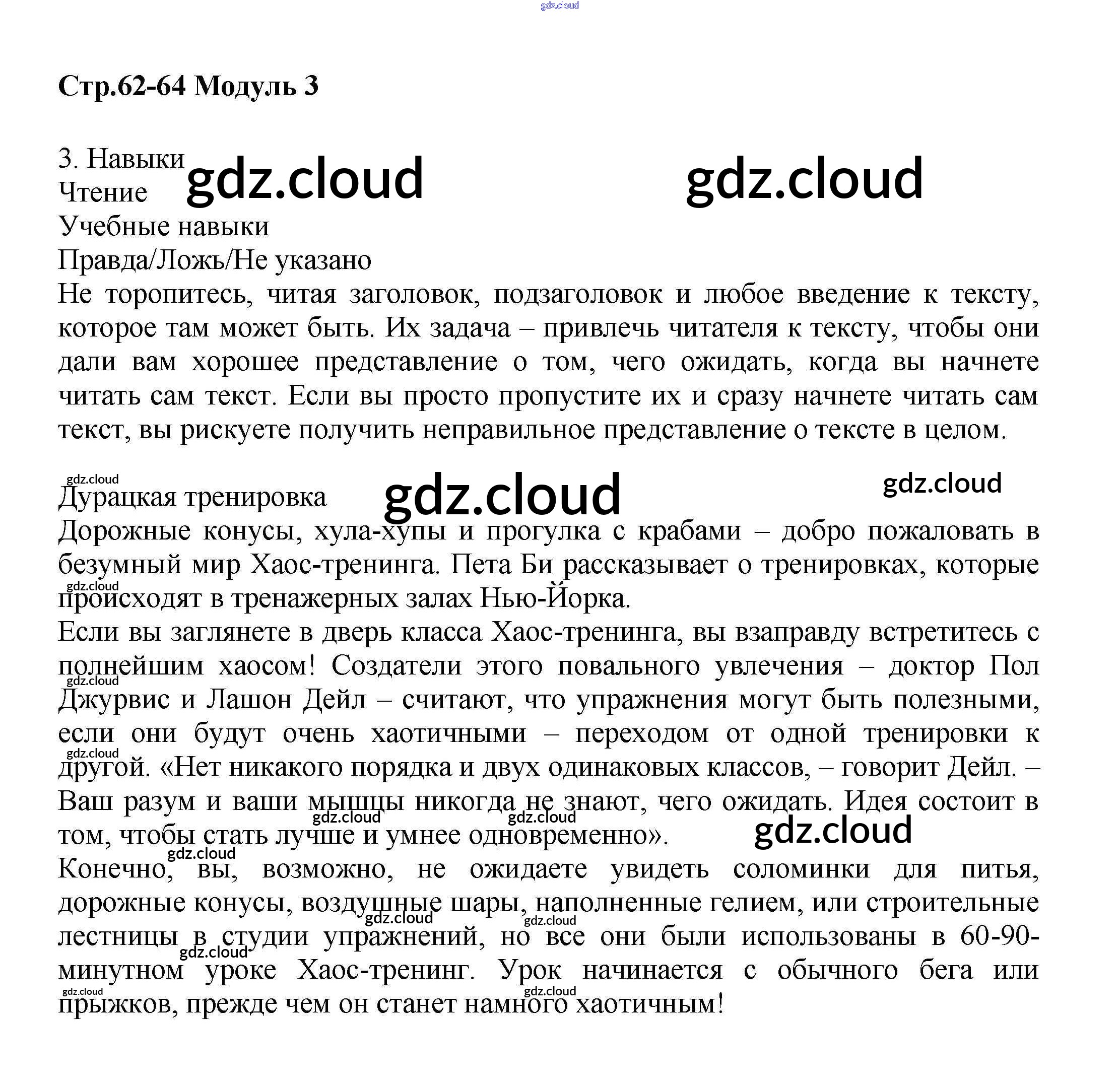 Ответ на задание стр.62-64 Учебник Английский язык за 9 (девятый) класс Баранова, Дули, Эванс, Копылова, Мильруд Starlight Углубленный уровень 2017