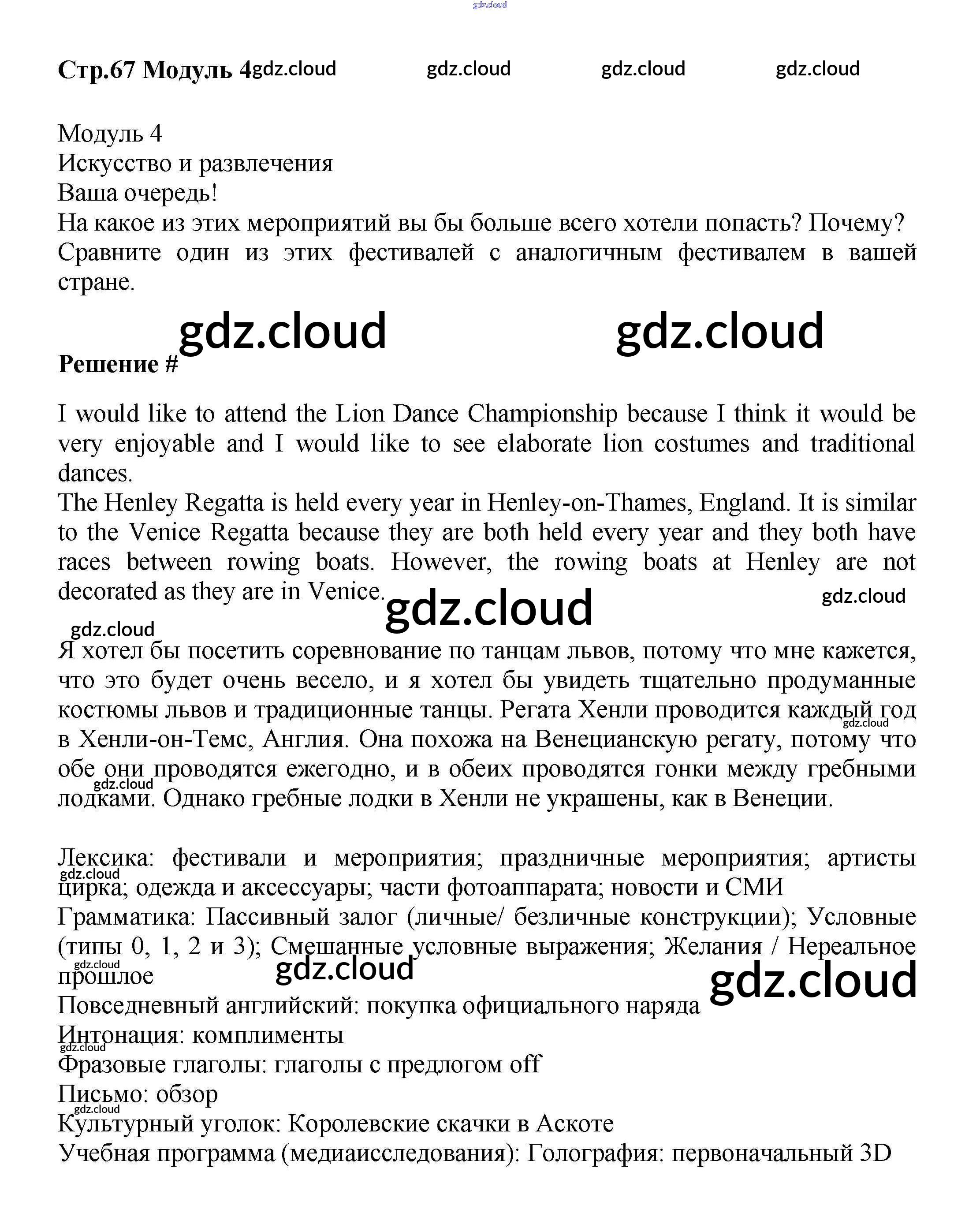 Ответ на задание стр.67 Учебник Английский язык за 9 (девятый) класс Баранова, Дули, Эванс, Копылова, Мильруд Starlight Углубленный уровень 2017