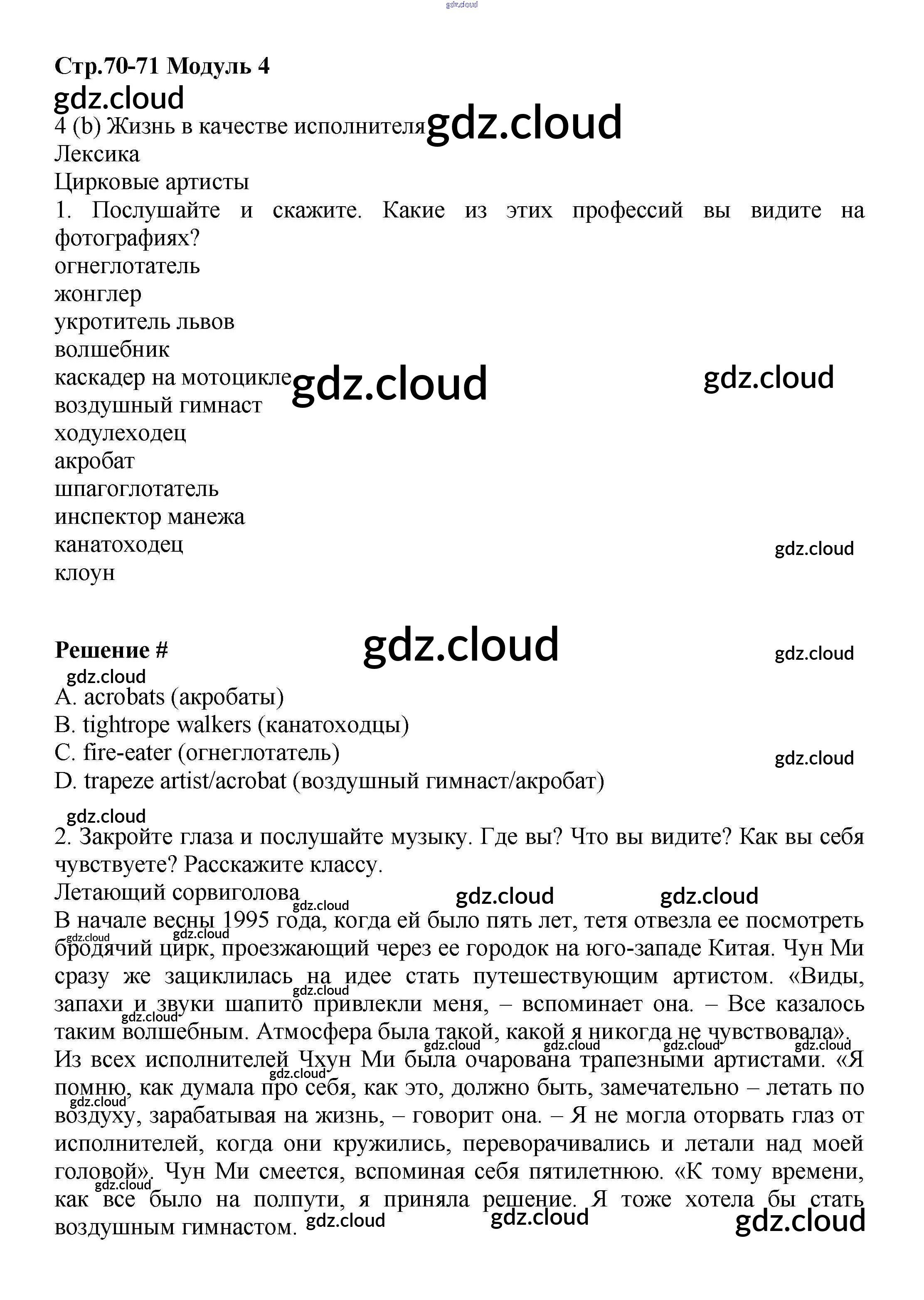Ответ на задание стр.70-71 Учебник Английский язык за 9 (девятый) класс Баранова, Дули, Эванс, Копылова, Мильруд Starlight Углубленный уровень 2017