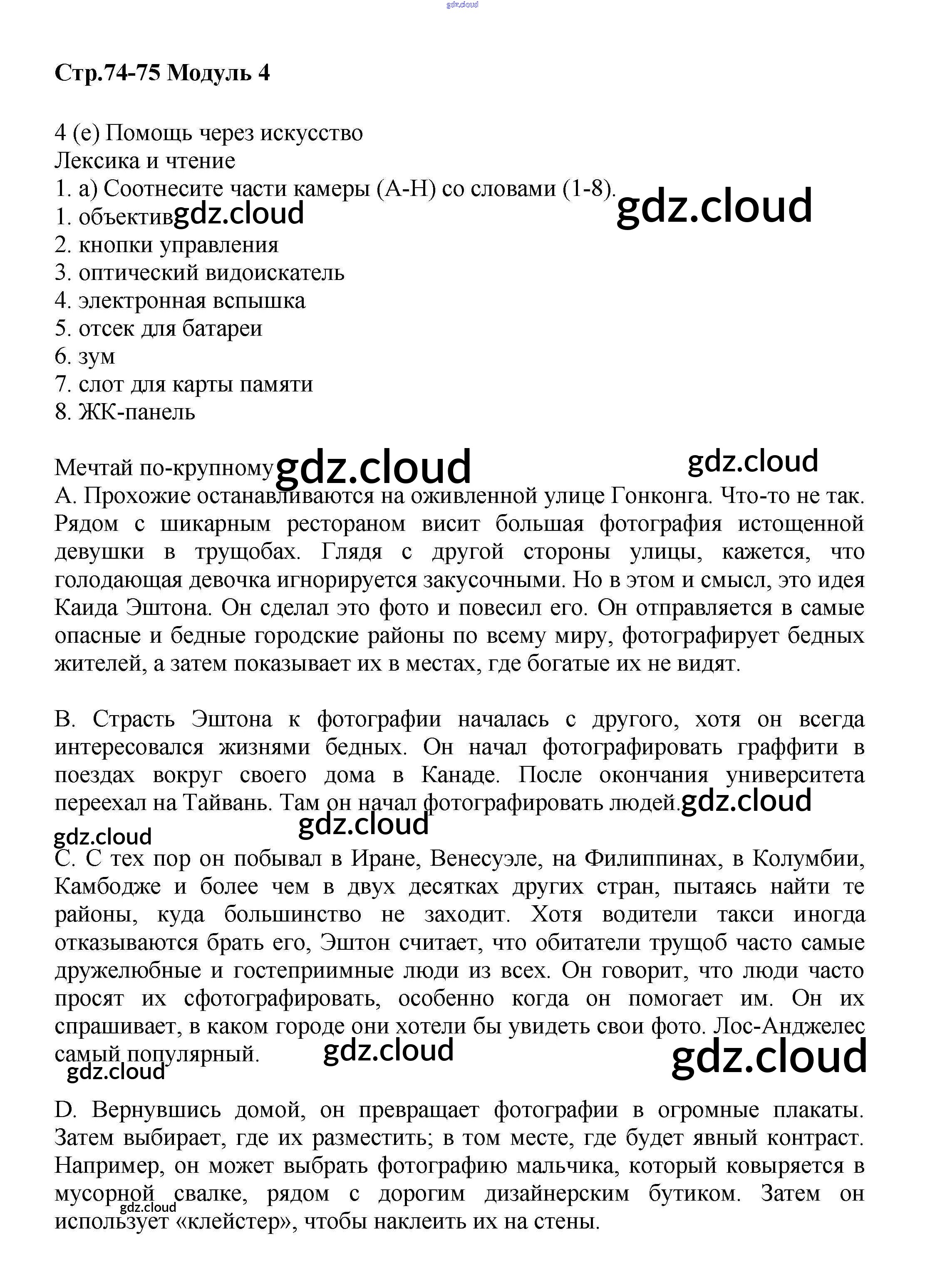 Ответ на задание стр.74-75 Учебник Английский язык за 9 (девятый) класс Баранова, Дули, Эванс, Копылова, Мильруд Starlight Углубленный уровень 2017