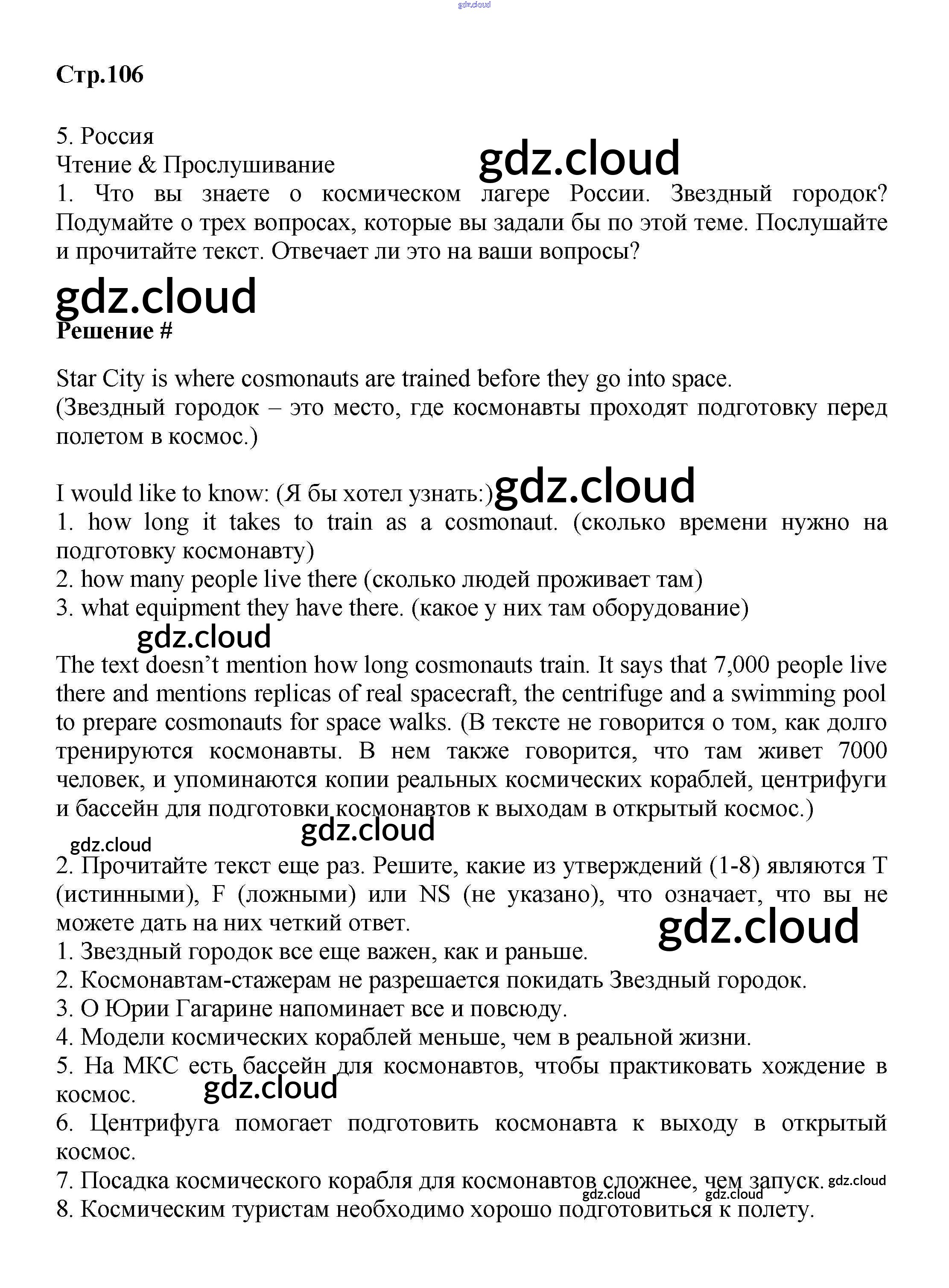 Ответ на задание стр.106 Учебник Английский язык за 9 (девятый) класс Баранова, Дули, Эванс, Копылова, Мильруд Starlight Углубленный уровень 2017