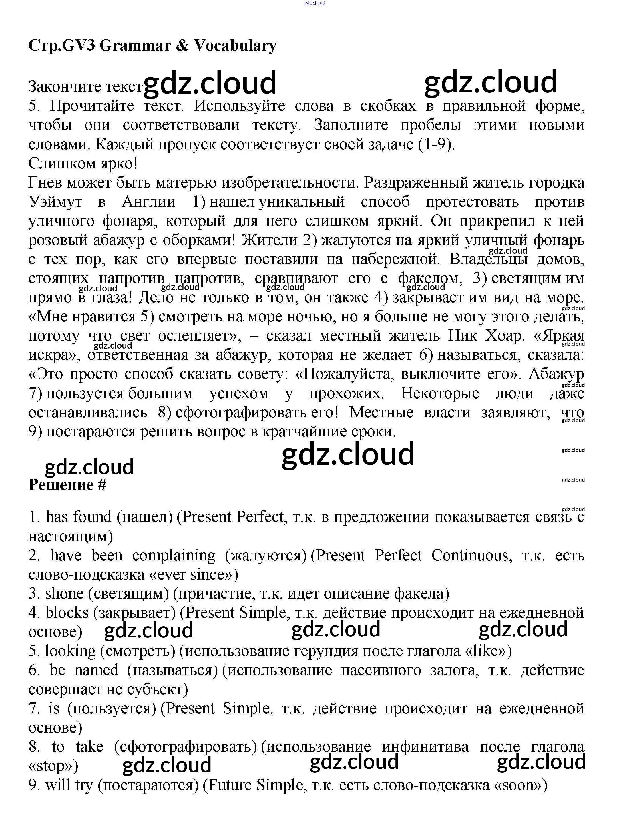 Ответ на задание GV3 Учебник Английский язык за 9 (девятый) класс Баранова, Дули, Эванс, Копылова, Мильруд Starlight Углубленный уровень 2017