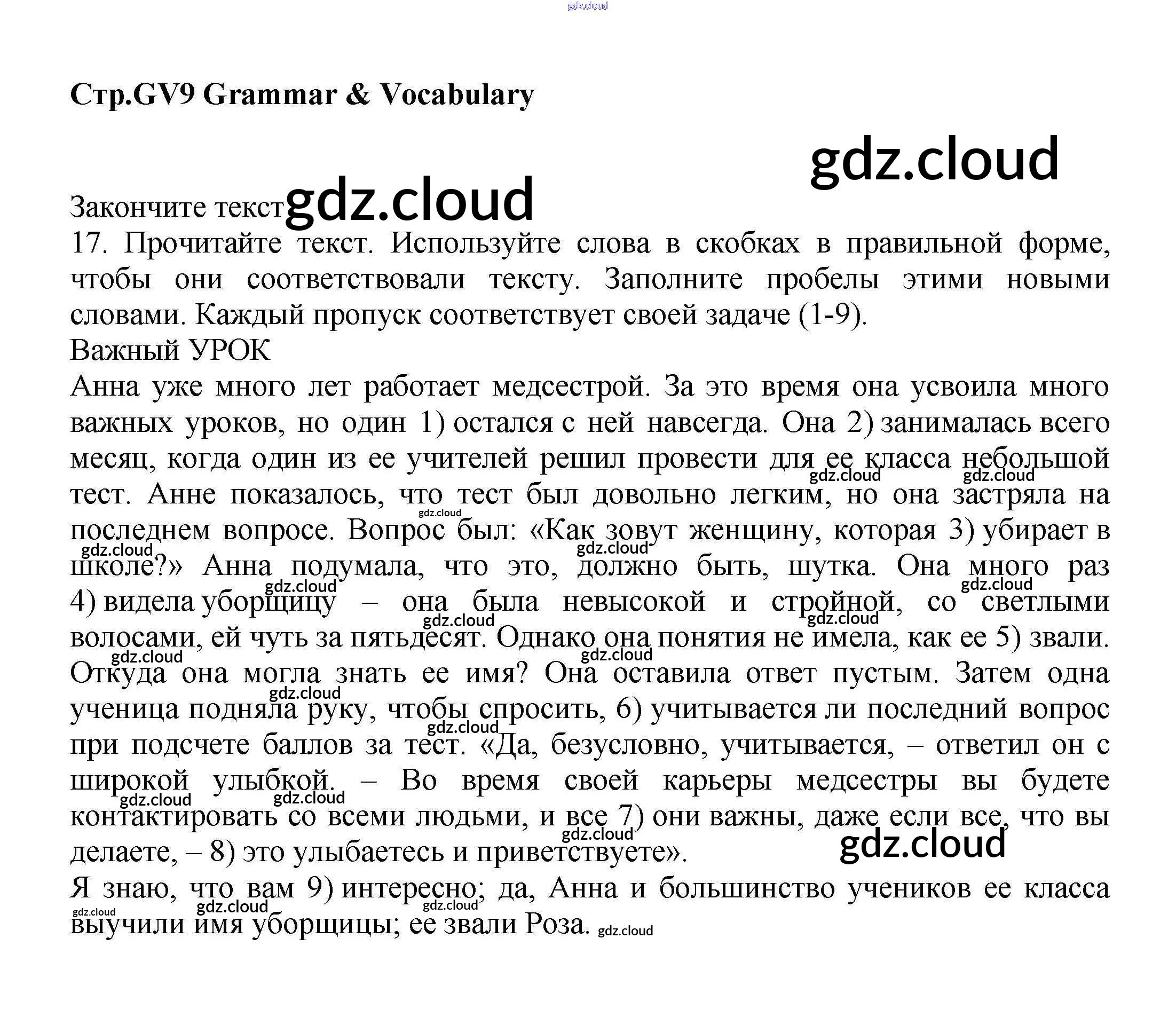 Ответ на задание GV9 Учебник Английский язык за 9 (девятый) класс Баранова, Дули, Эванс, Копылова, Мильруд Starlight Углубленный уровень 2017