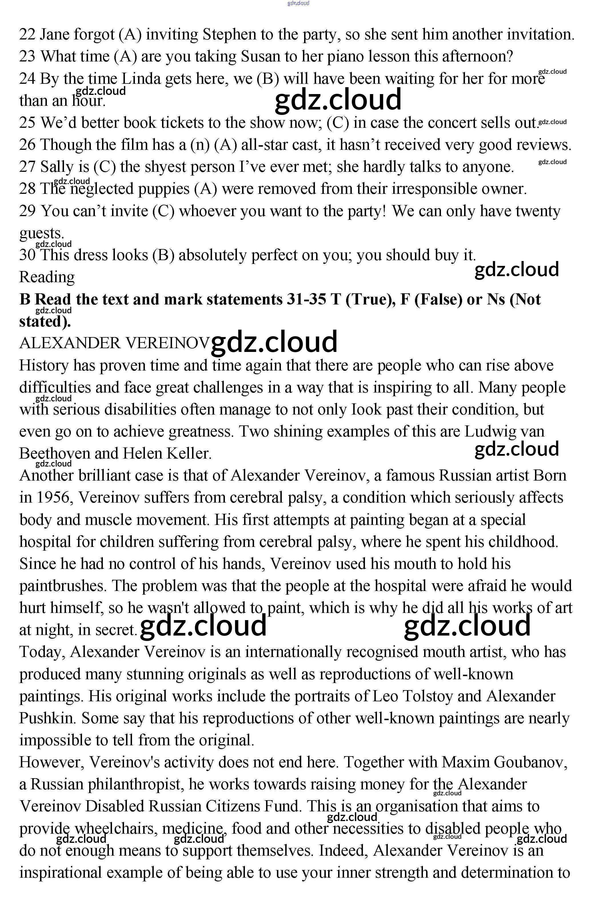 Ответ на задание Тест Контрольные задания Английский язык за 9 (девятый) класс Ваулина, Дули, Подоляко, Эванс Spotlight 2018