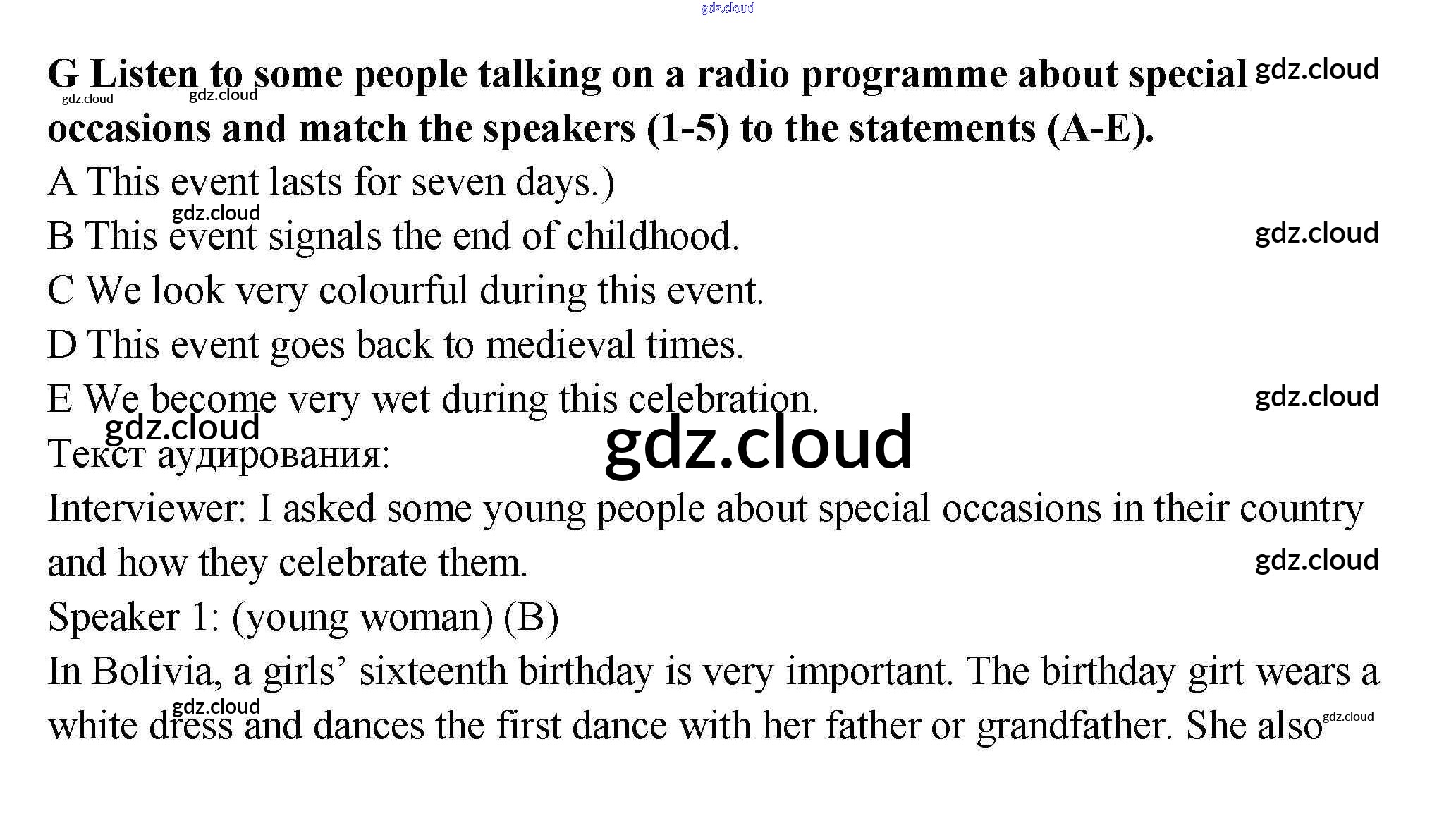 Ответ на задание G Контрольные задания Английский язык за 9 (девятый) класс Ваулина, Дули, Подоляко, Эванс Spotlight 2018