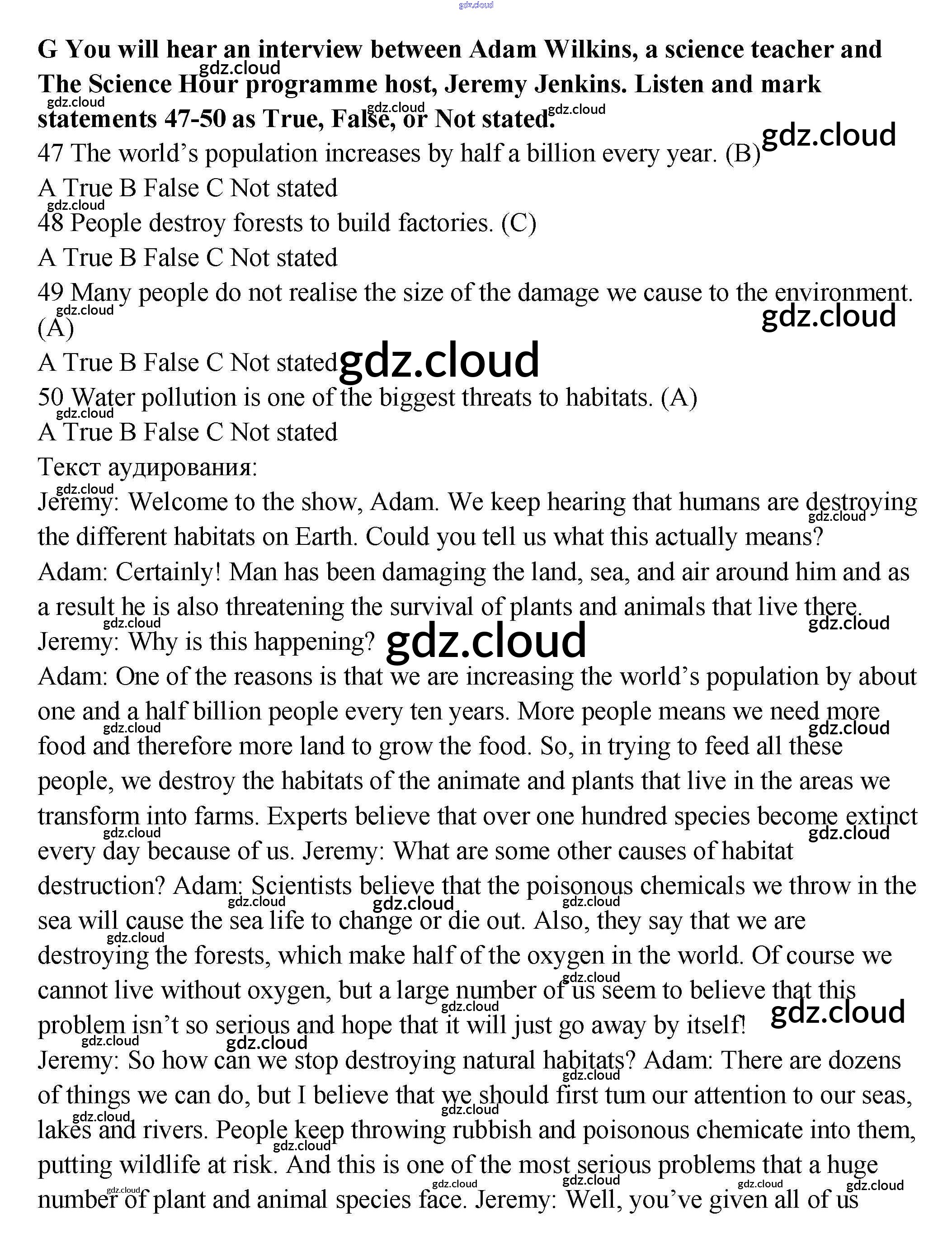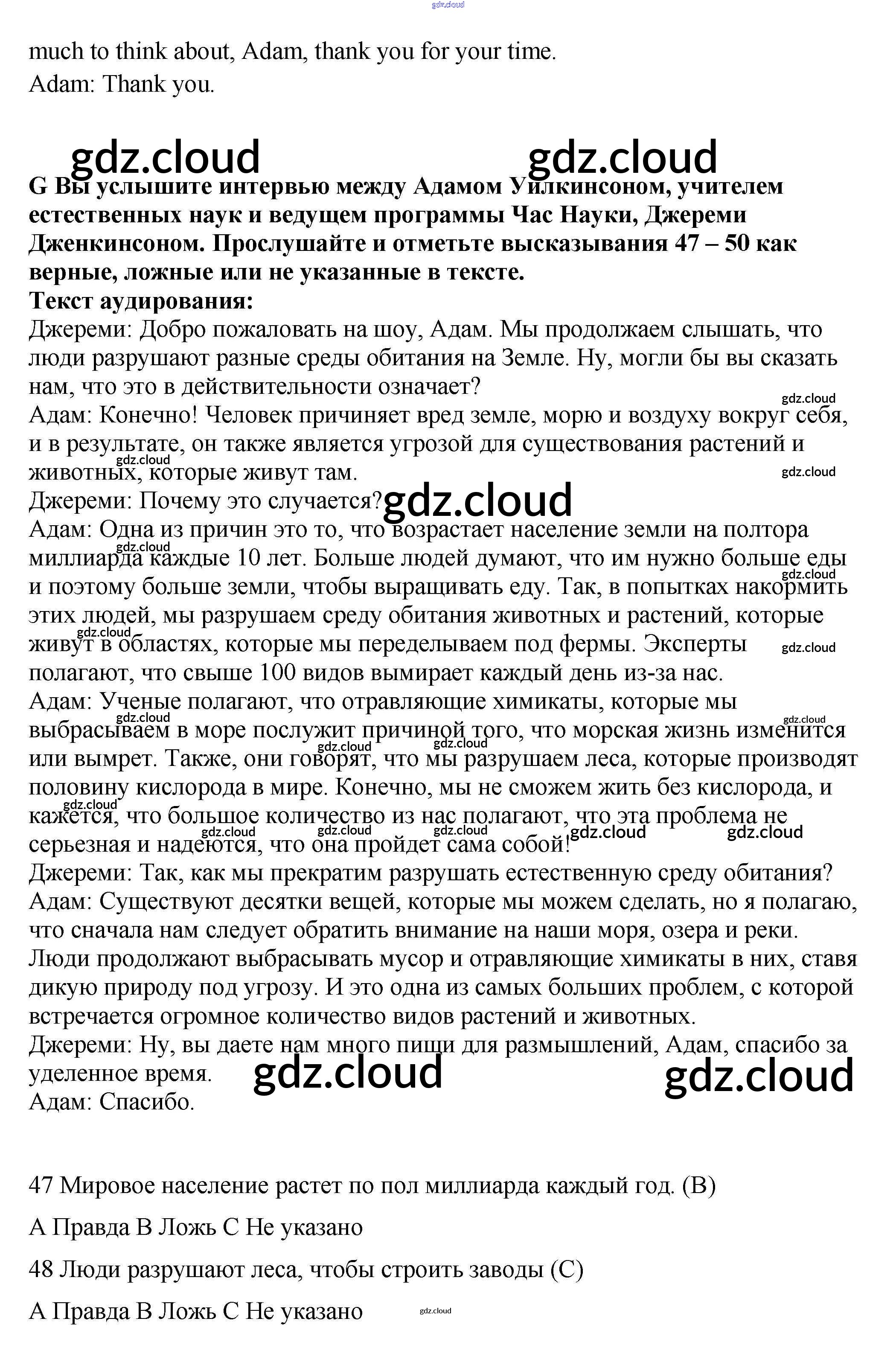 Ответ на задание G Контрольные задания Английский язык за 9 (девятый) класс Ваулина, Дули, Подоляко, Эванс Spotlight 2018