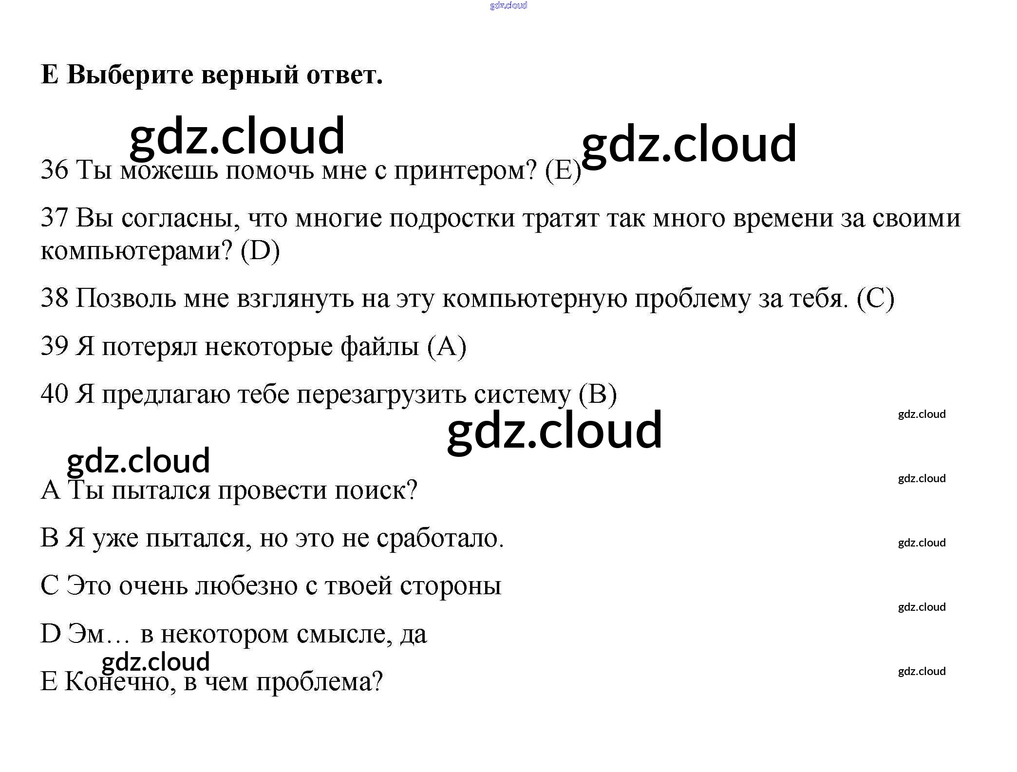 Ответ на задание E Контрольные задания Английский язык за 9 (девятый) класс Ваулина, Дули, Подоляко, Эванс Spotlight 2018