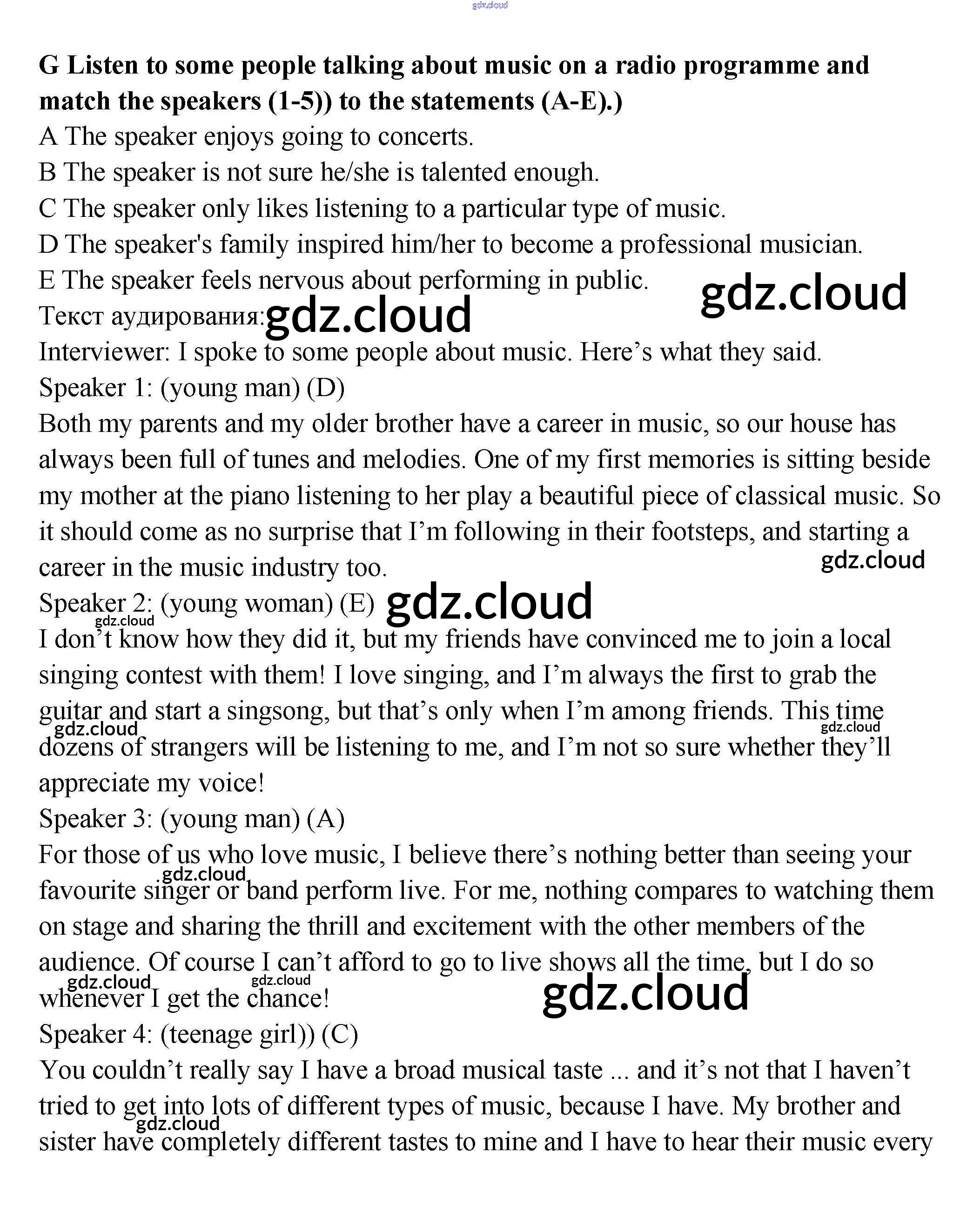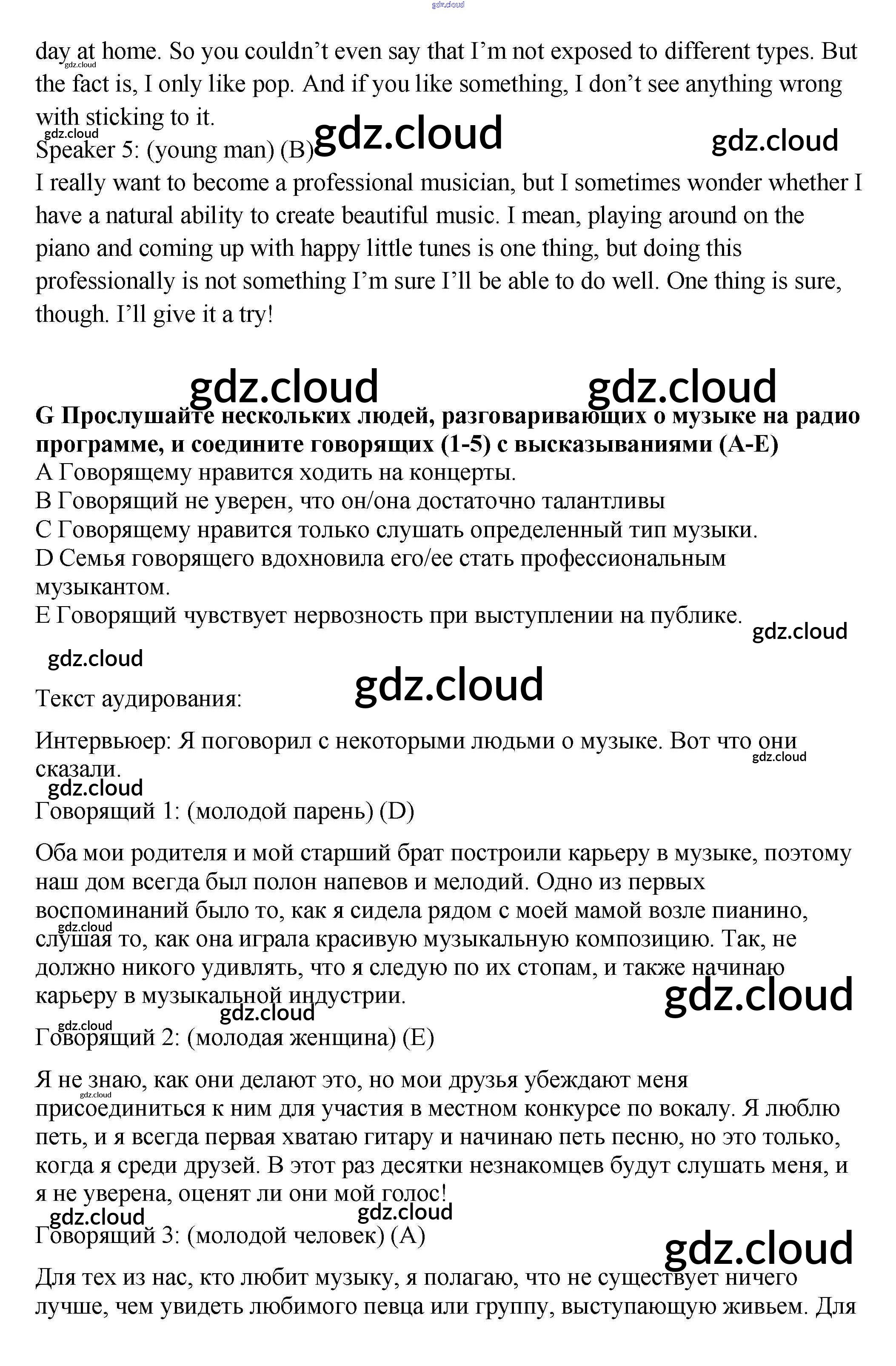 Ответ на задание G Контрольные задания Английский язык за 9 (девятый) класс Ваулина, Дули, Подоляко, Эванс Spotlight 2018