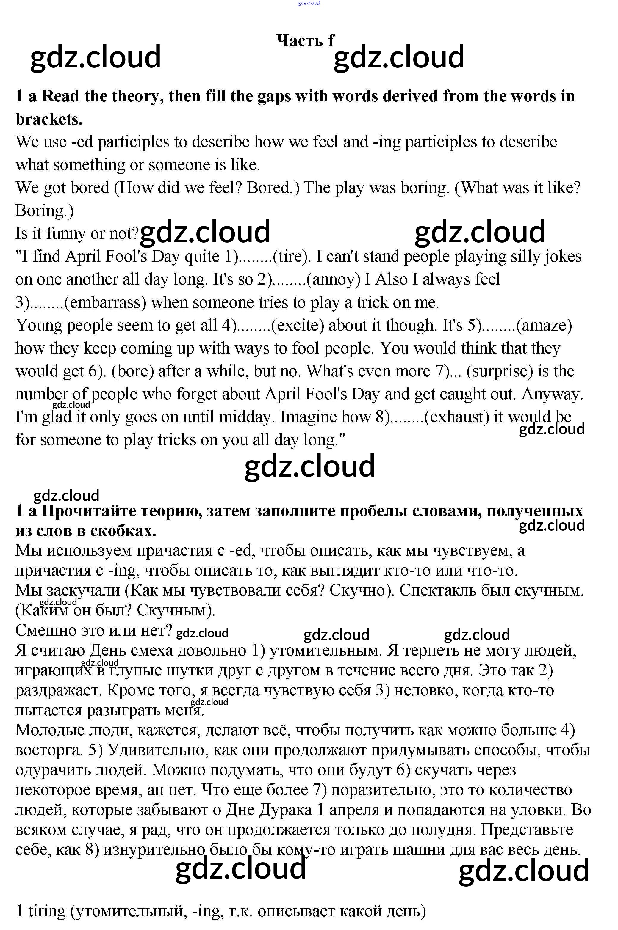 Часть 1f Ответы к Модуль 1 по Английскому языку 9 класс Учебник Ваулина Spotlight Просвещение