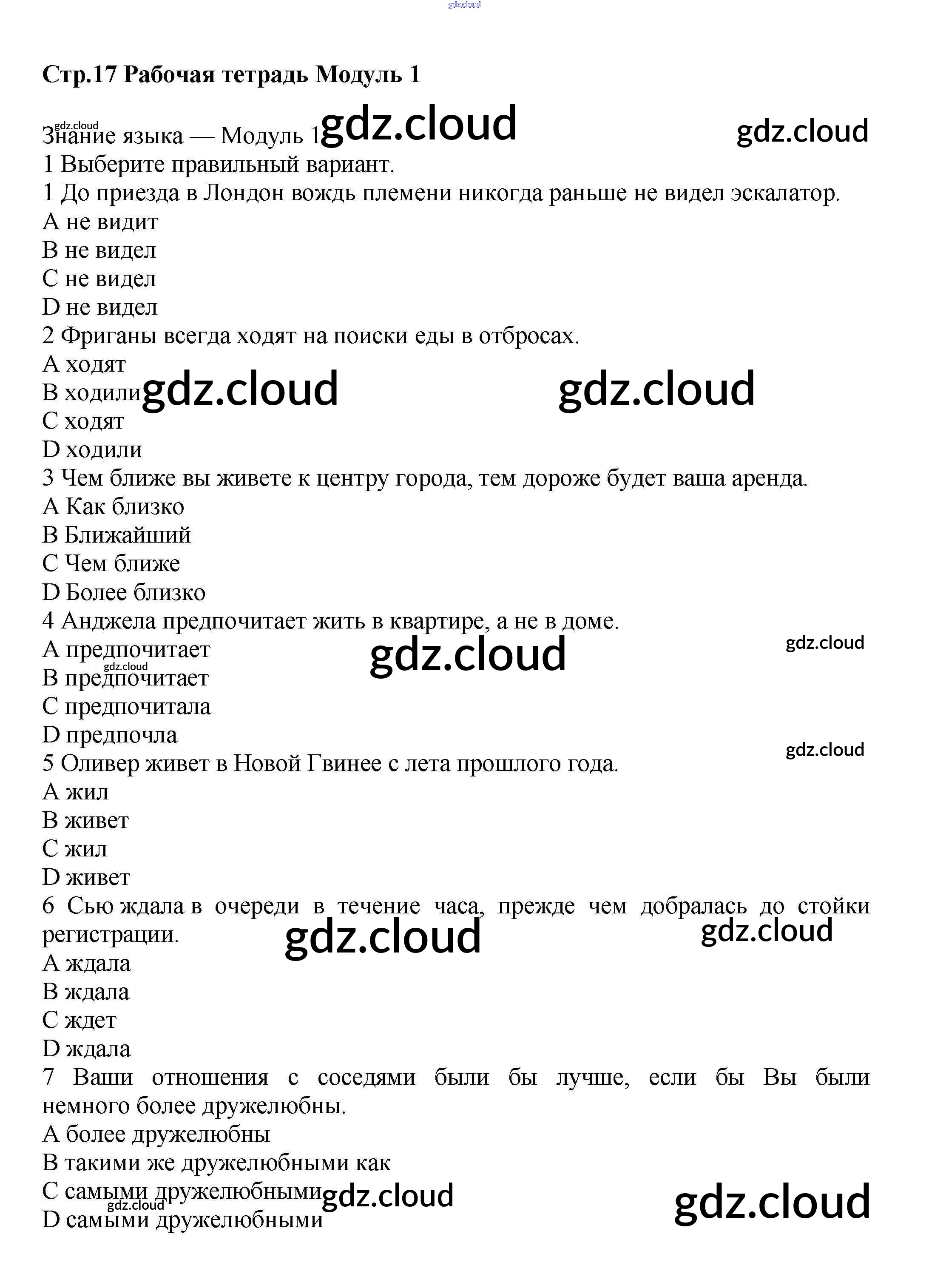 Ответ на задание стр.17 Рабочая тетрадь Английский язык за 9 (девятый) класс Баранова, Дули, Эванс, Копылова, Мильруд Starlight Углубленный уровень 2017